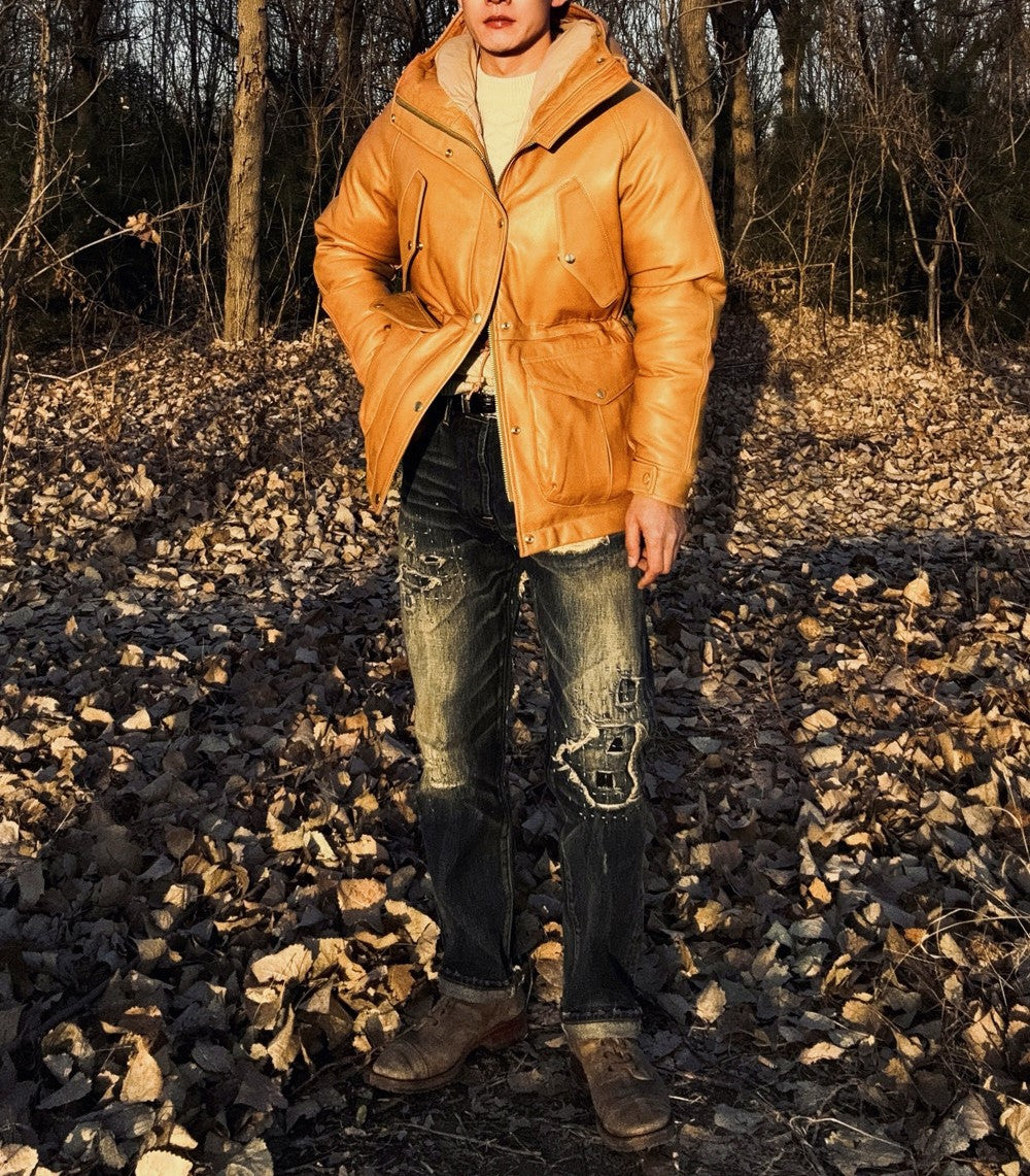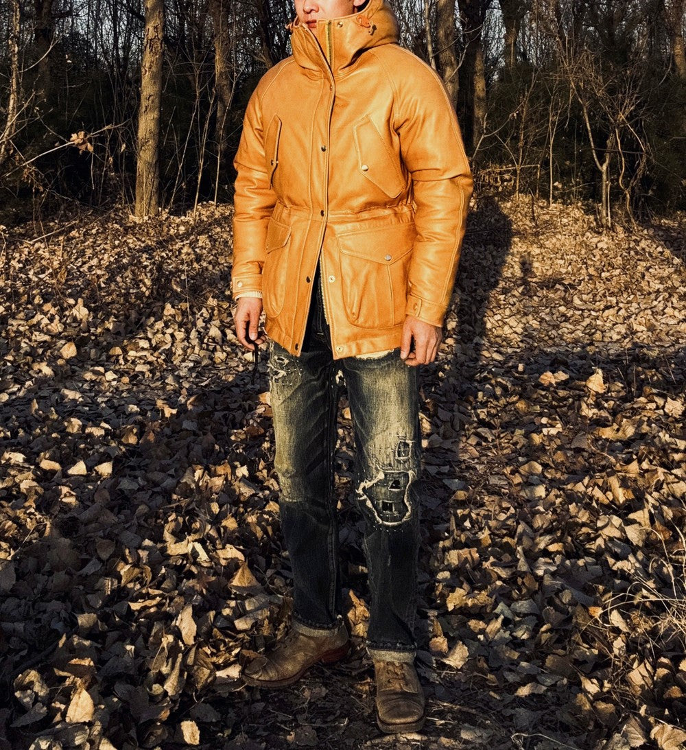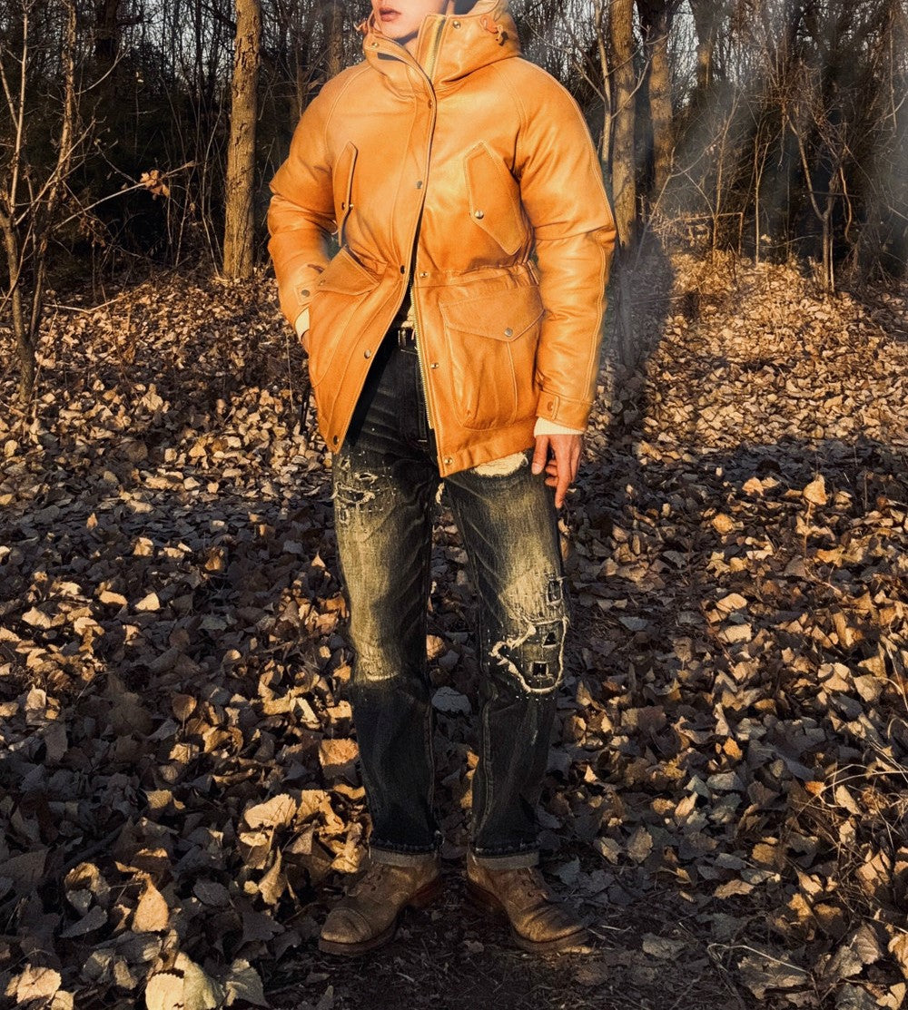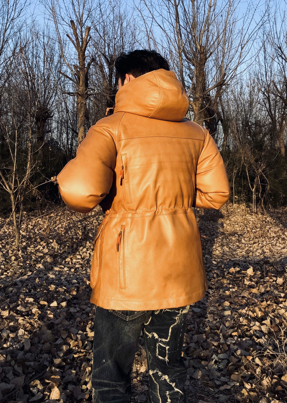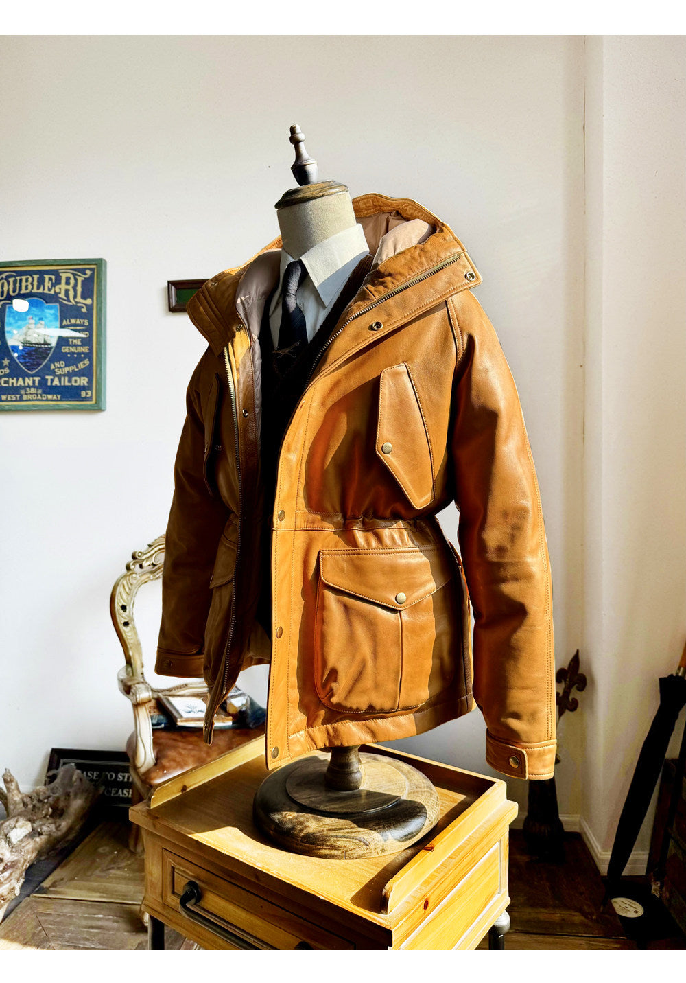 ◇イタリア産シープレザー使用 水染めレザーダウンジャケット◇ M~XL