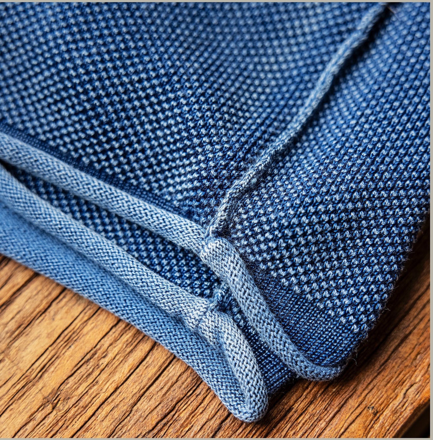 表情豊かな生地に藍染を施した