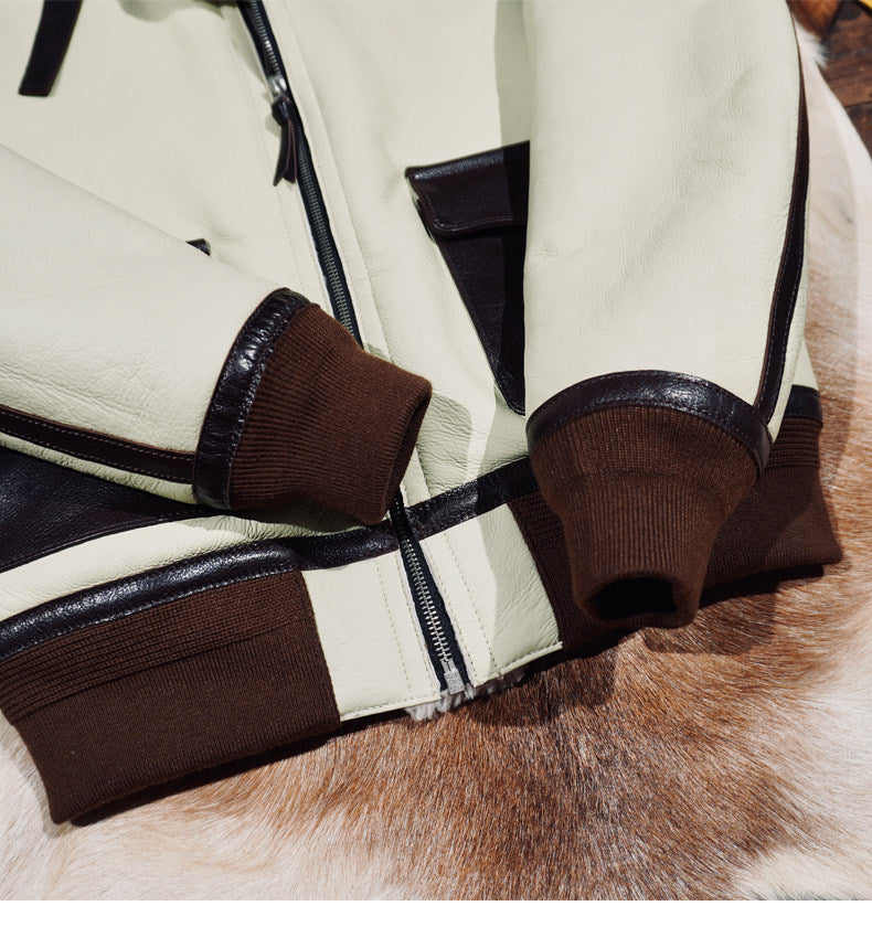 ◆オーストラリア産ムートン A-2フライトジャケット◆ホワイト S~4XL