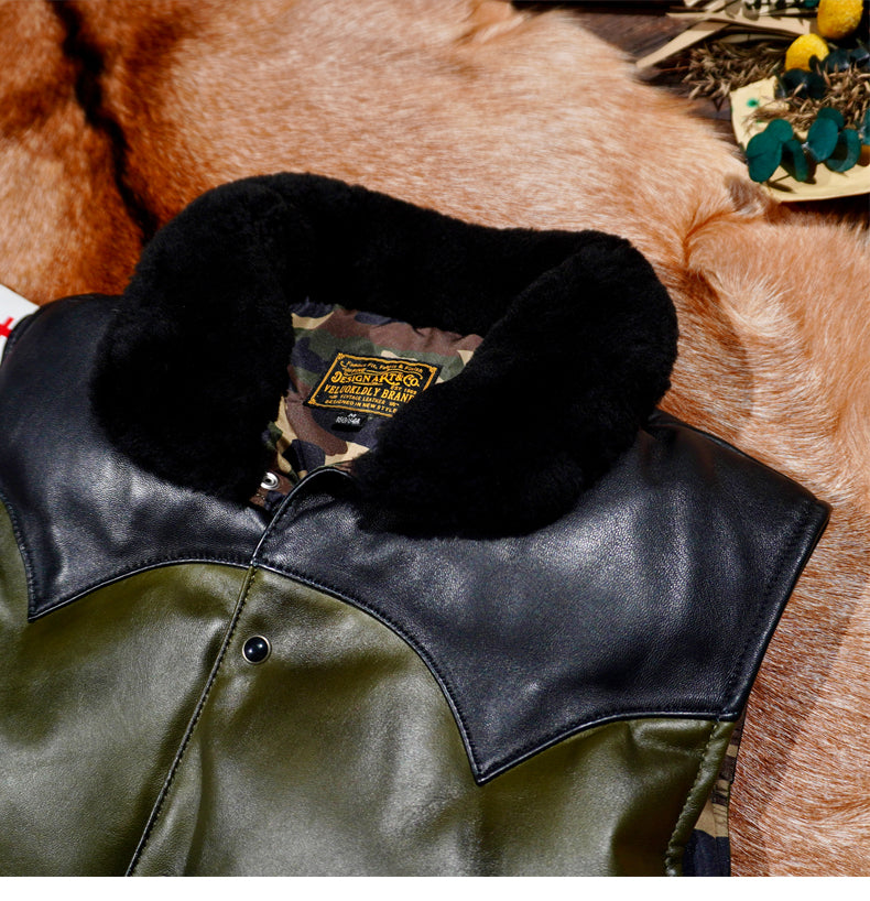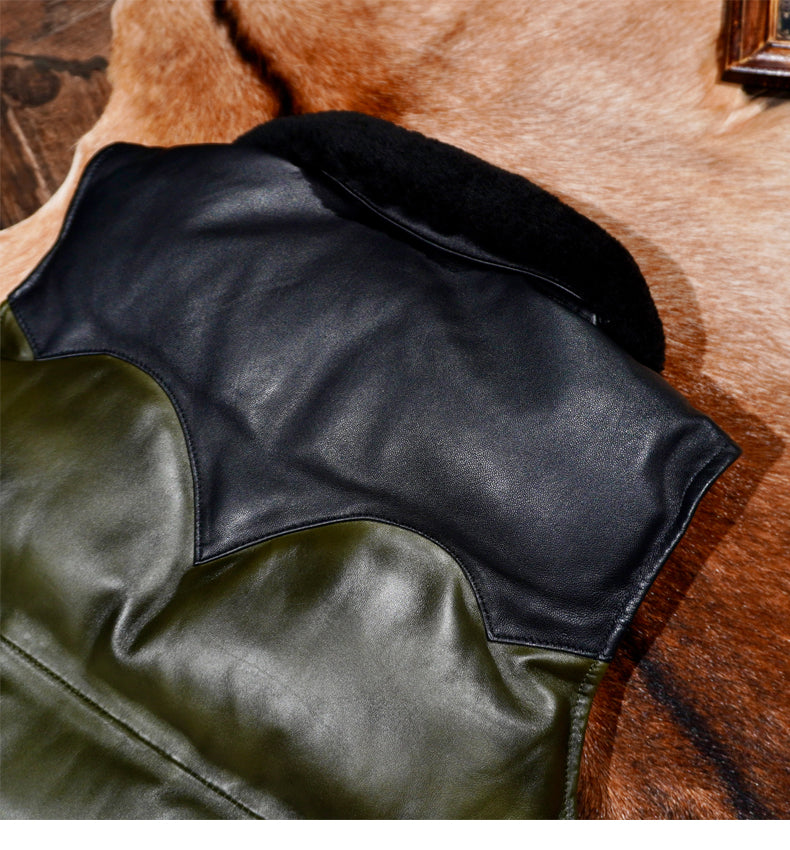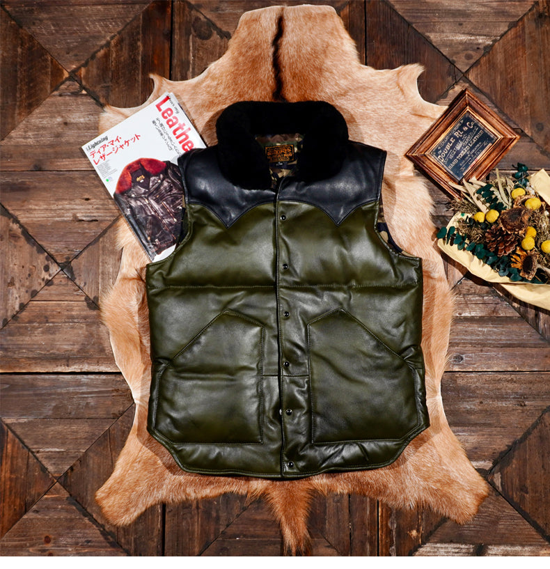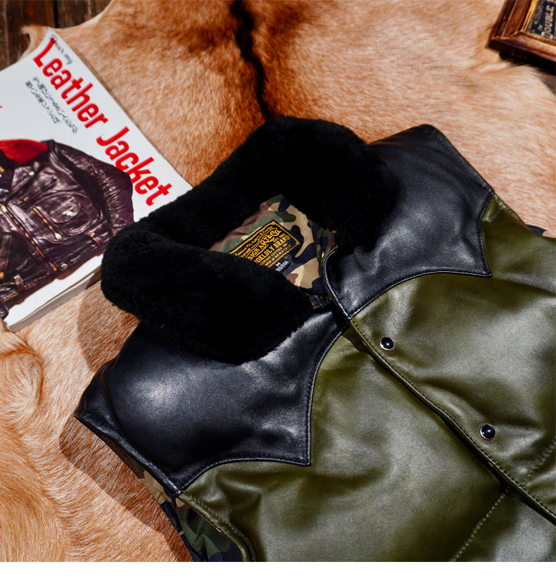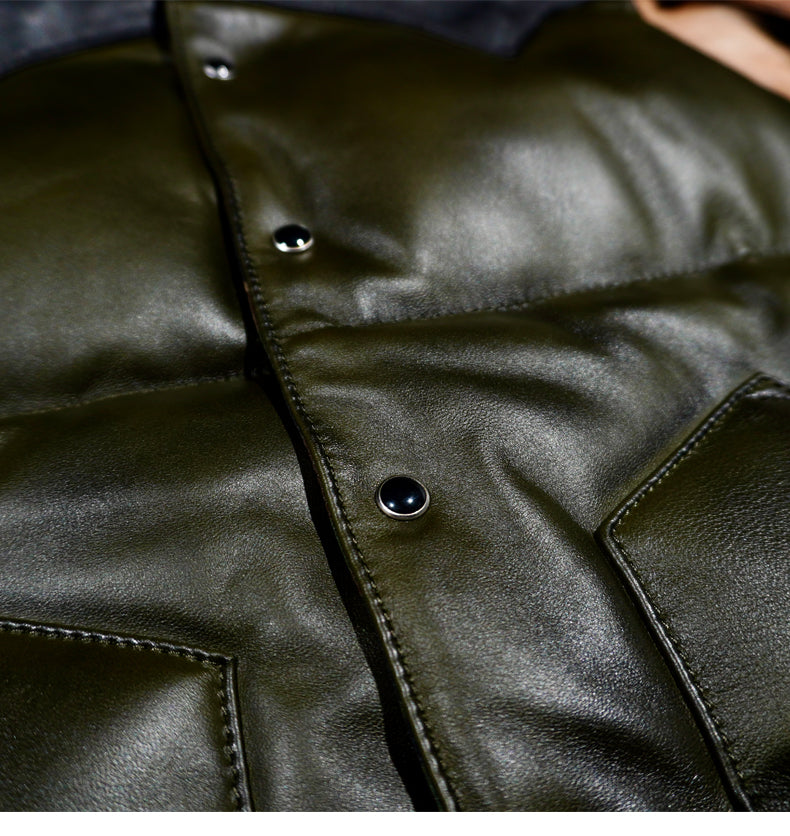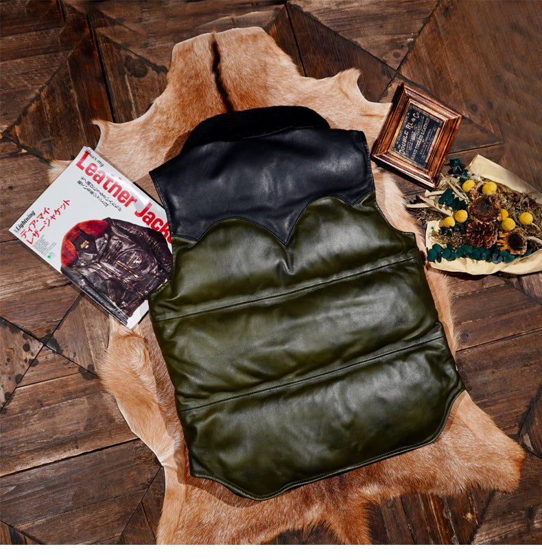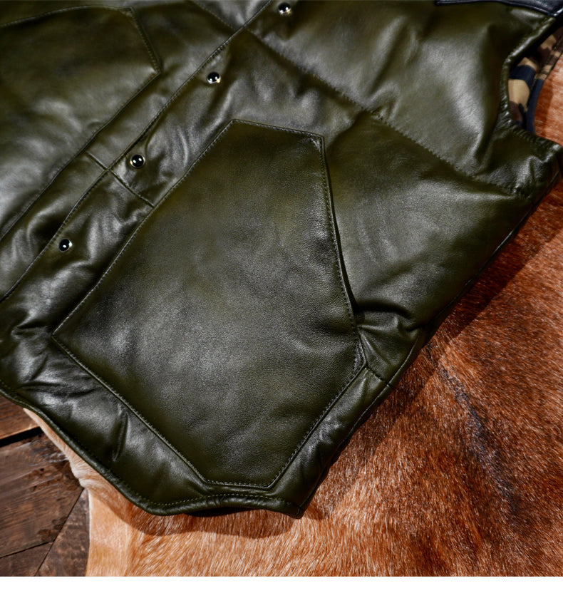 ◇カーキ×ブラックの渋い色合い◇イタリア産シープレザーダウン ベスト◇ S~4XL