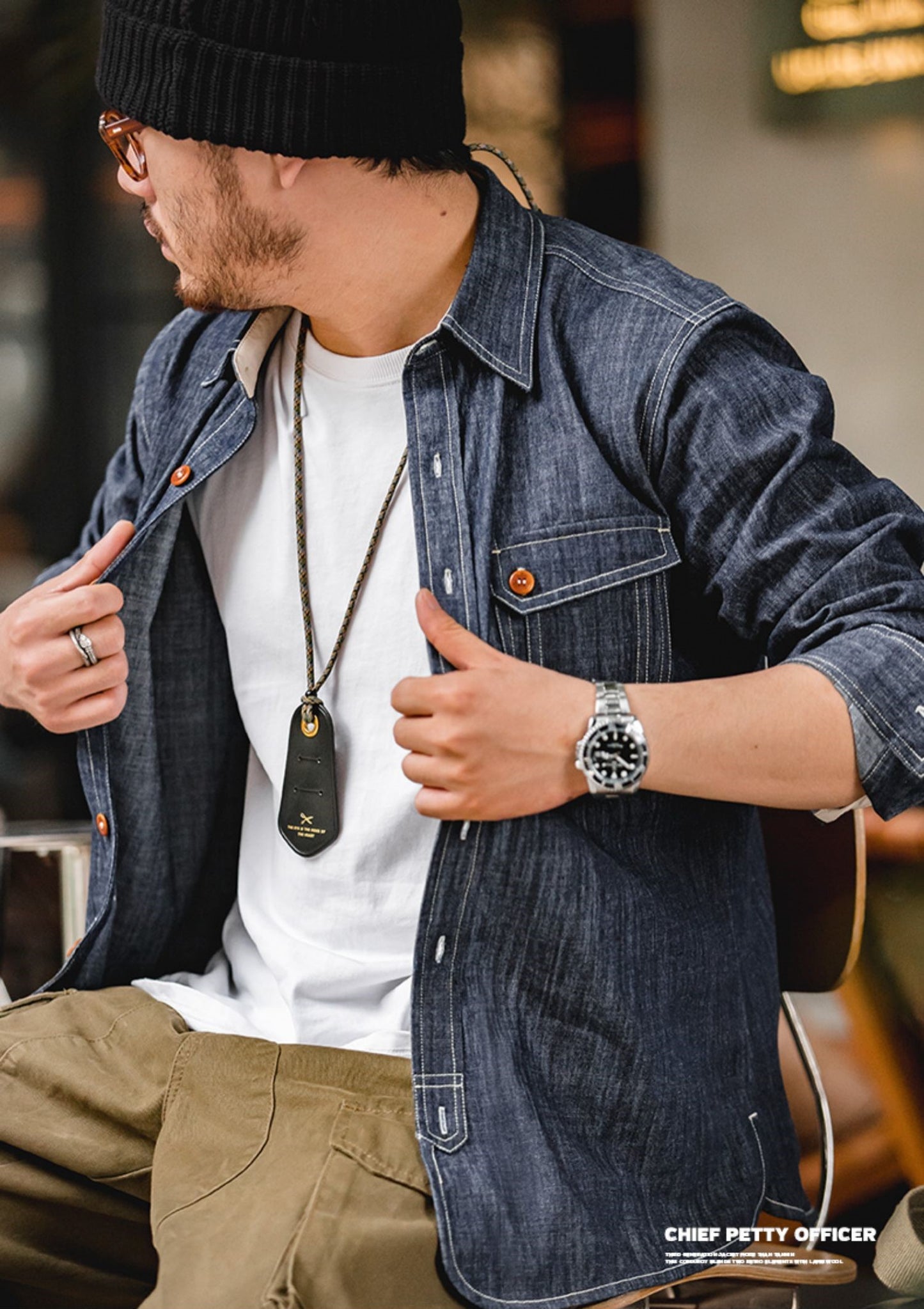 ★生地感最高★ポケットのステッチワークがポイントに★ヴィンテージ復刻デニムダンガリーシャツ★S~2XL