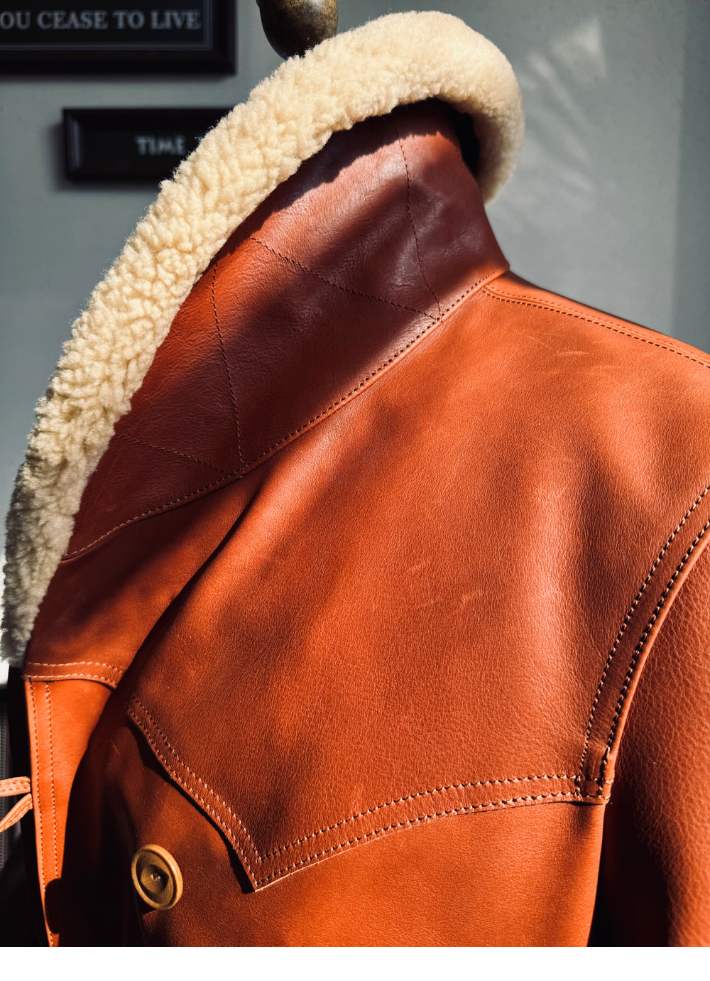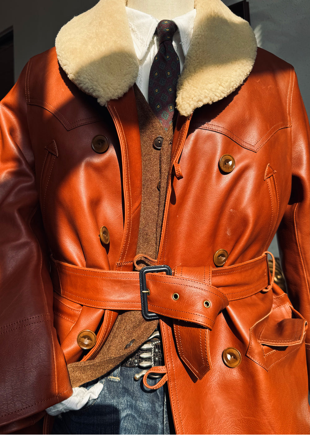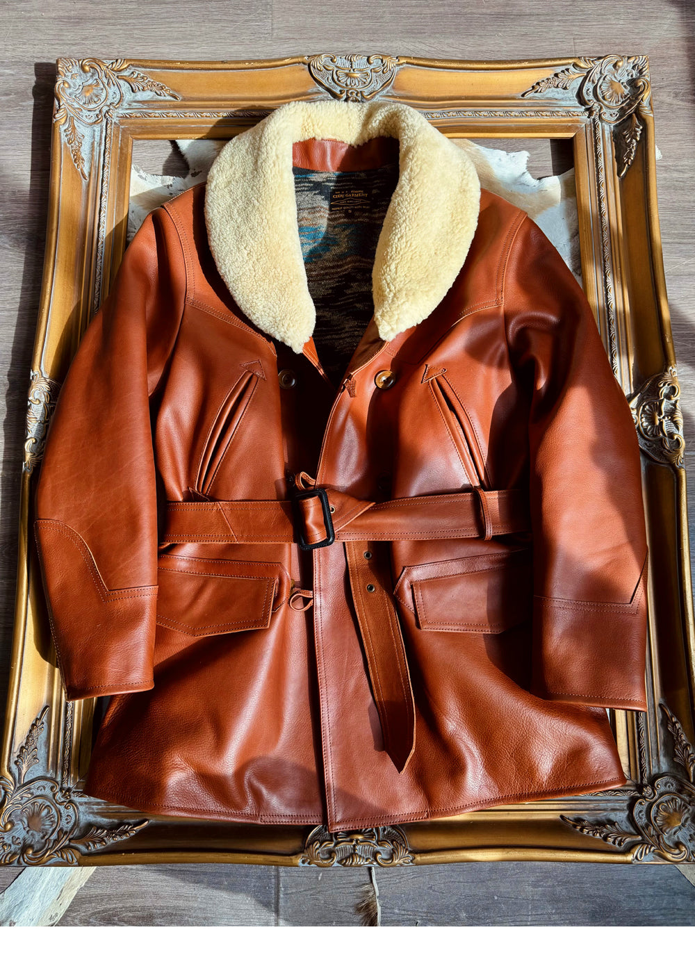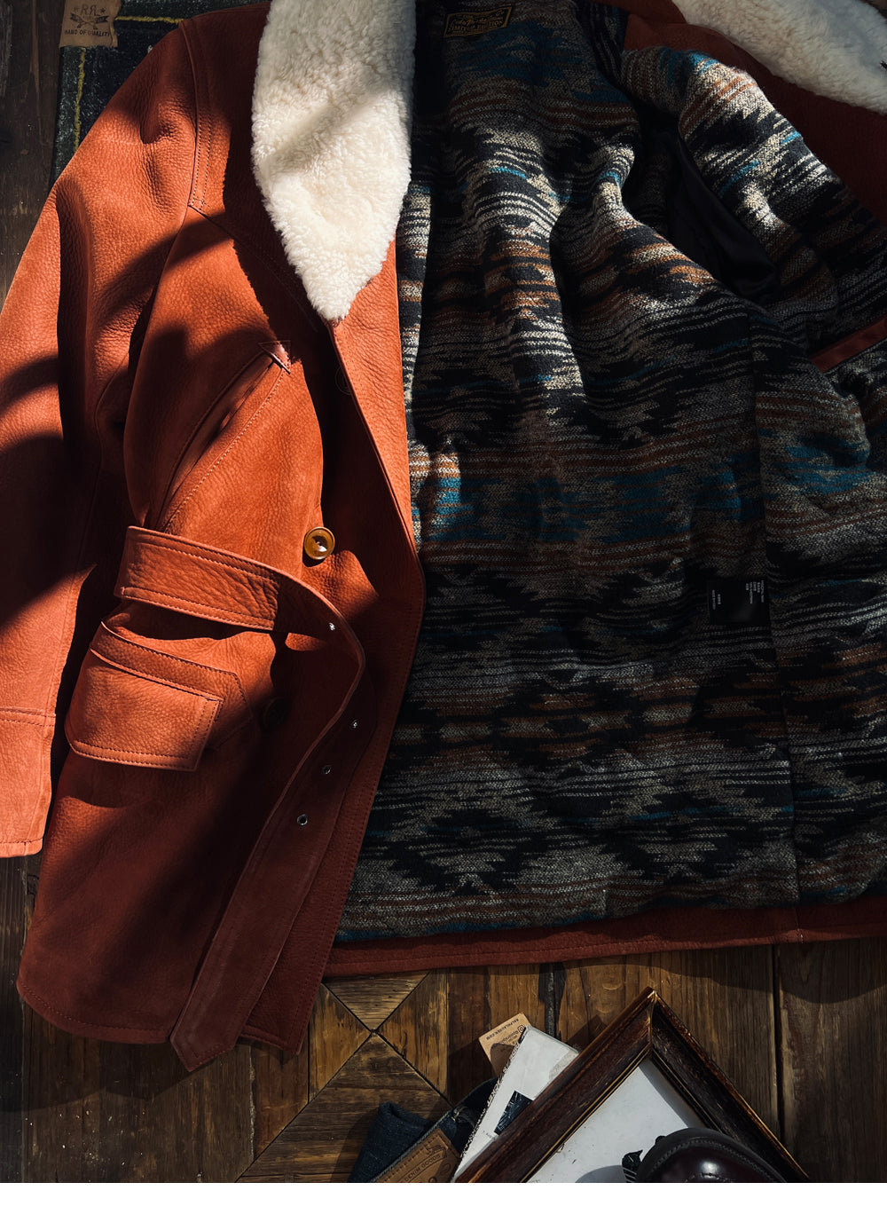 ★ナバホブランケット裏地★アメリカ産植物タンニン鞣しカウレザー×ムートン ランチコート★
