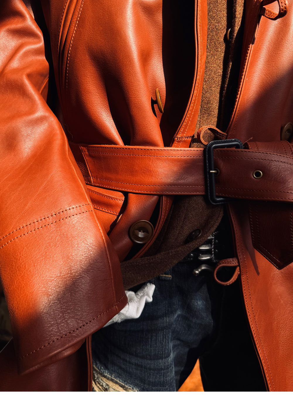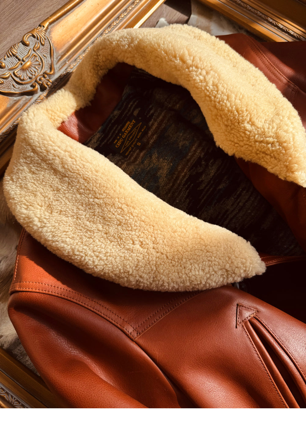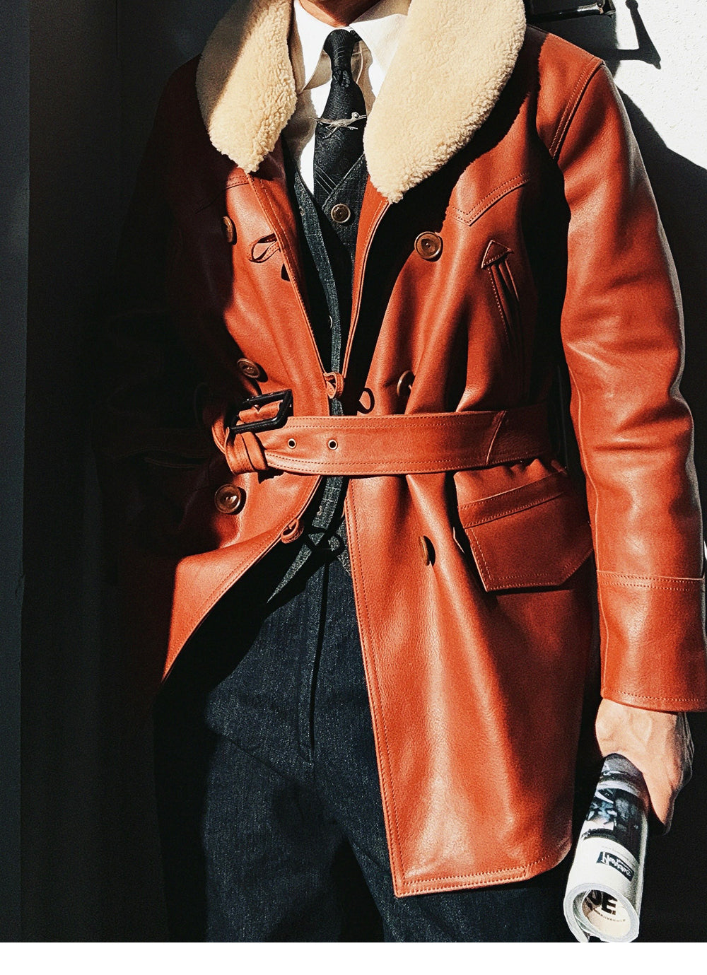 ★ナバホブランケット裏地★アメリカ産植物タンニン鞣しカウレザー×ムートン ランチコート★