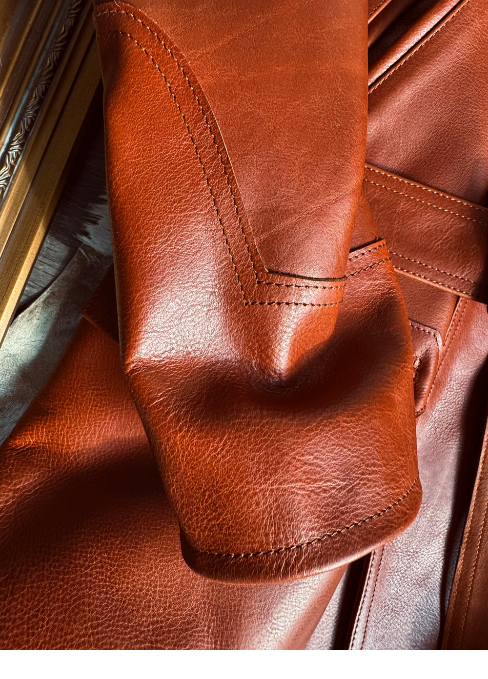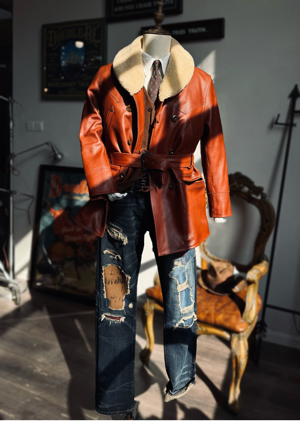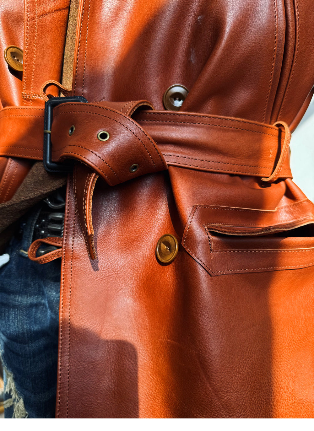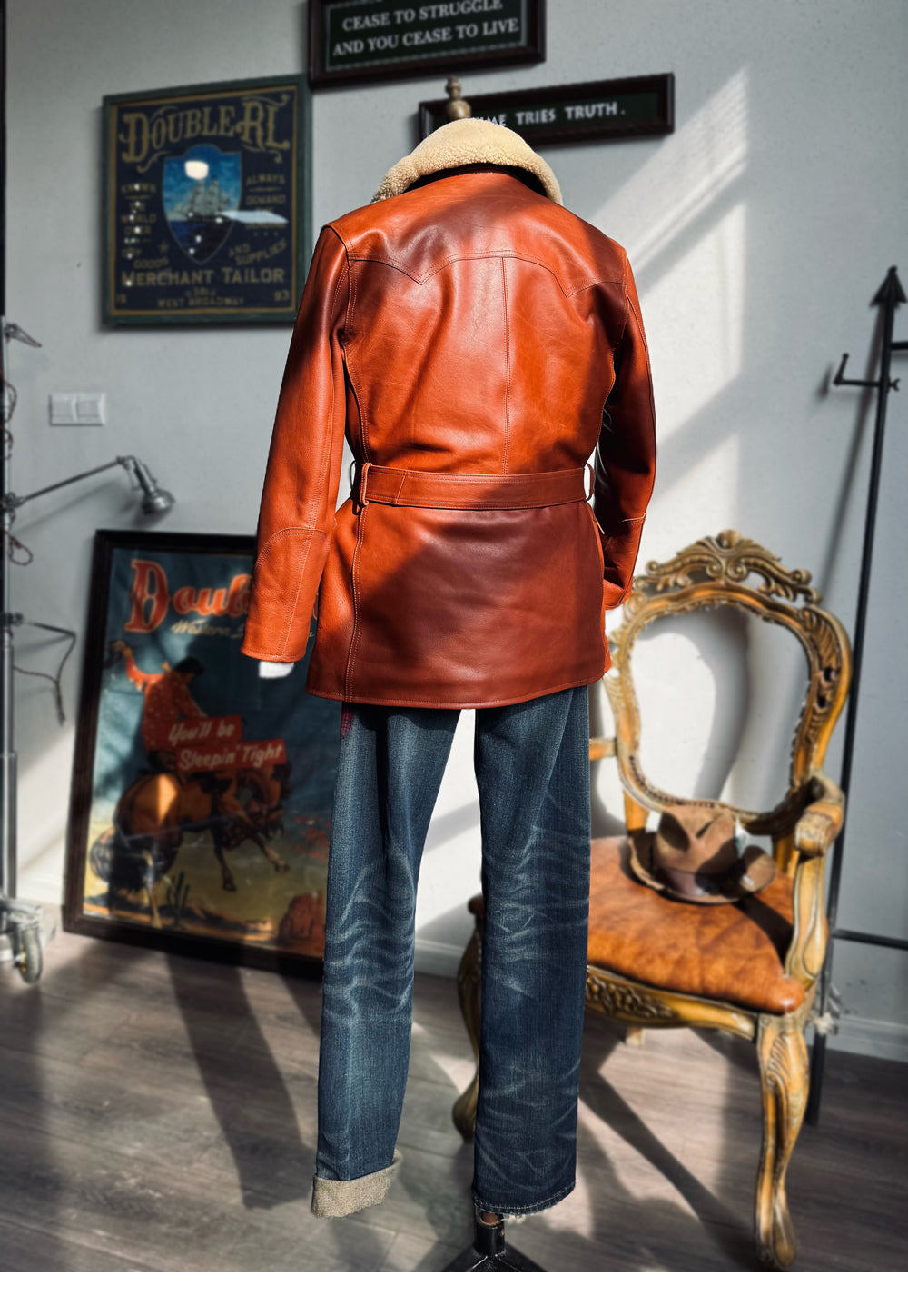 ★ナバホブランケット裏地★アメリカ産植物タンニン鞣しカウレザー×ムートン ランチコート★