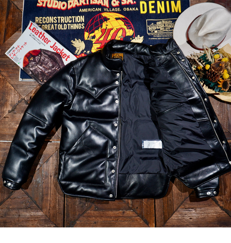 ◇ニュージーランド産シープレザー使用 ブラックレザーダウン ウエスタンステッチ ジャケット◇ S~4XL