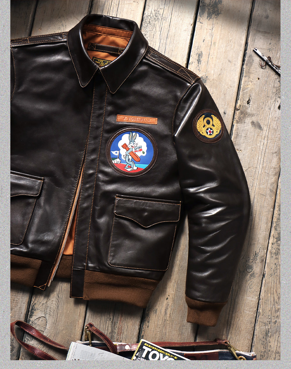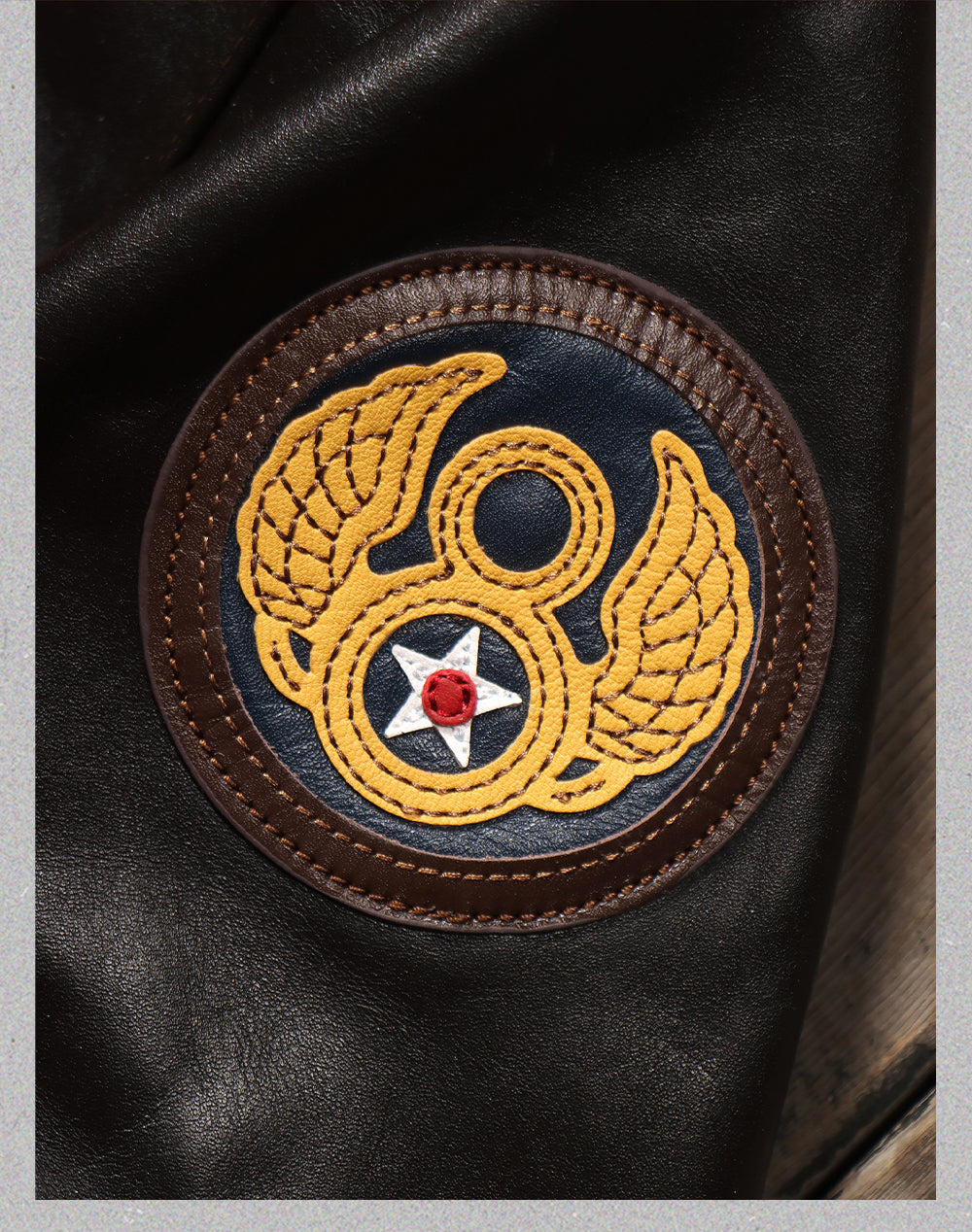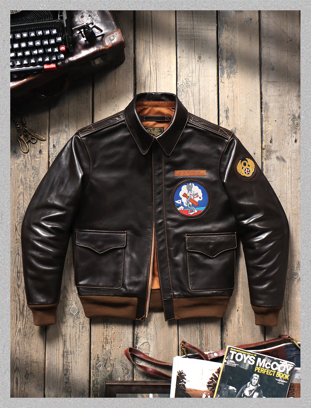 ハンドペイントのワッペンがキュート✩ヴィンテージ復刻 植物タンニン鞣しホースハイドレザー メンフィスベルモデル A-2ジャケット✩