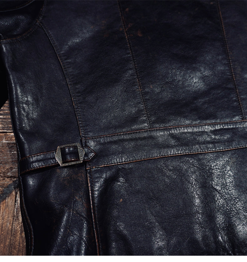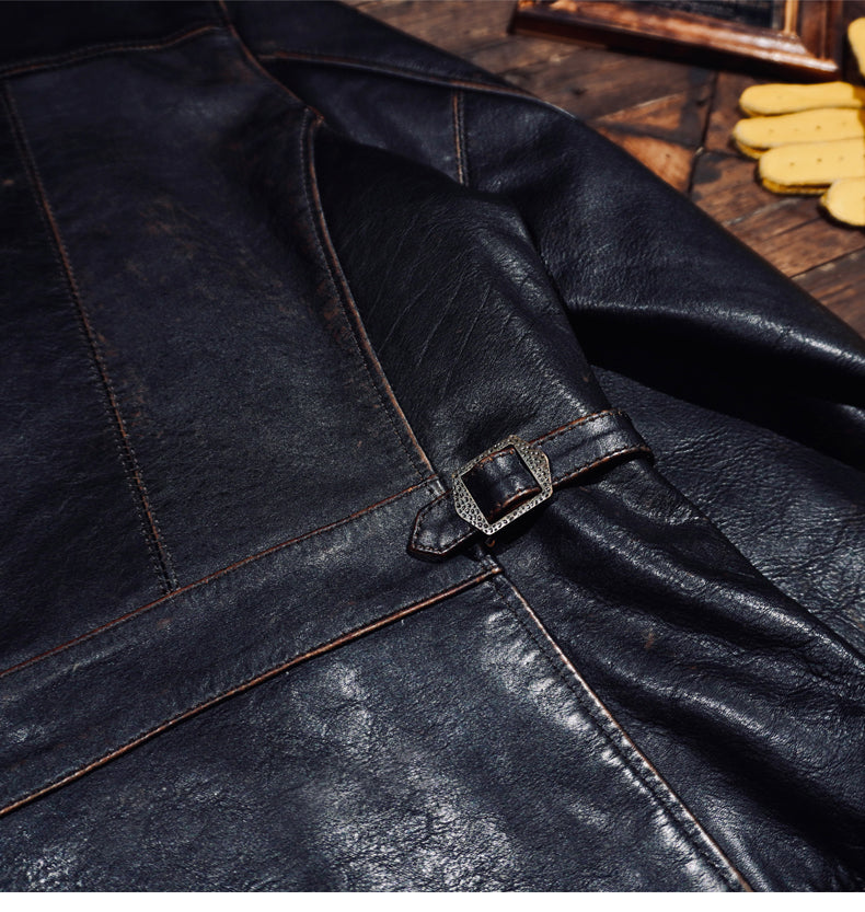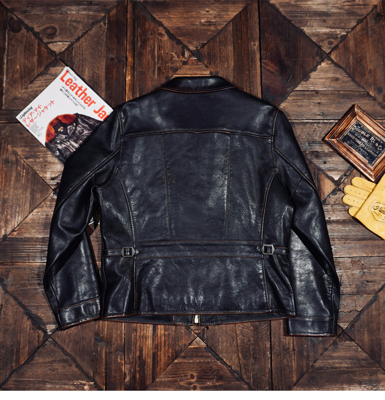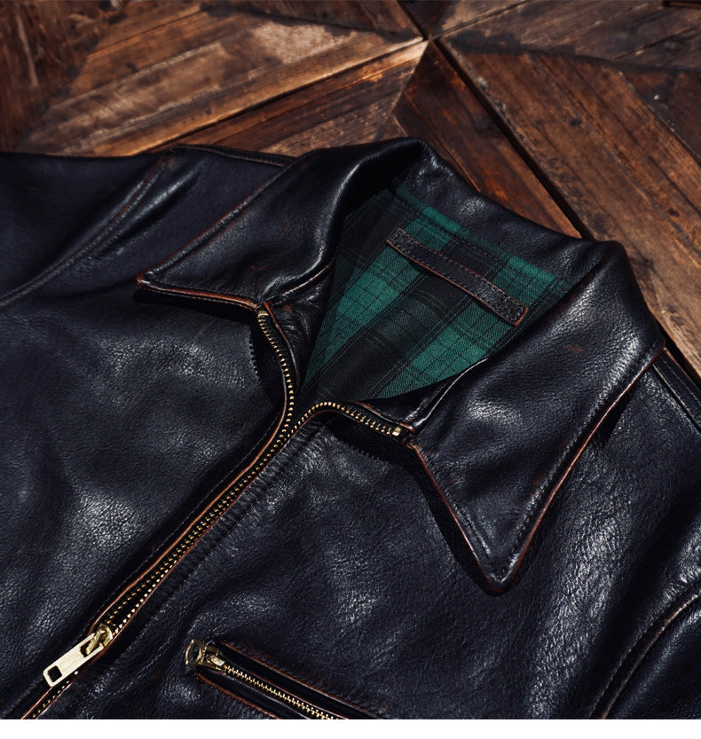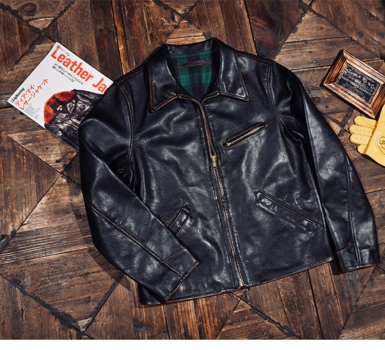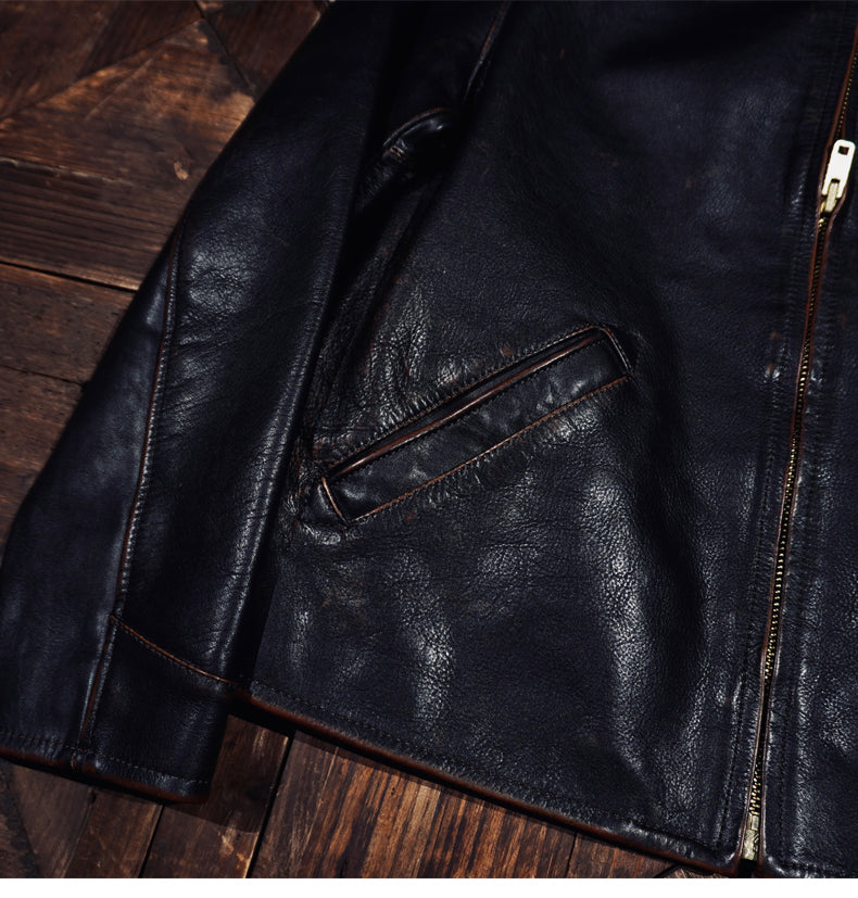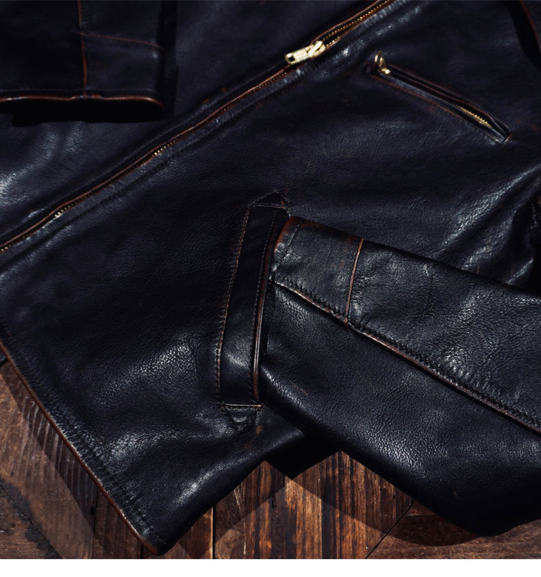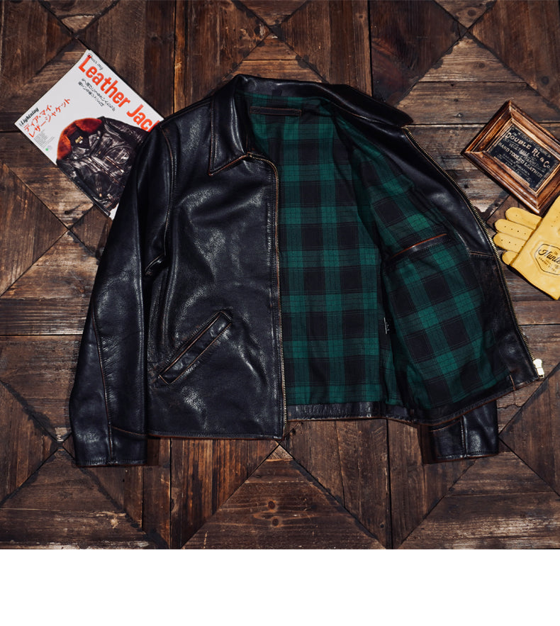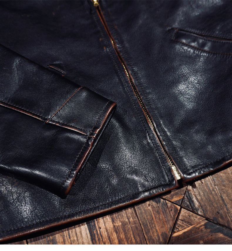 ◇ ヴィンテージ復刻ウォッシュ カウレザー スポーツジャケット ブラック◇ S~4XL