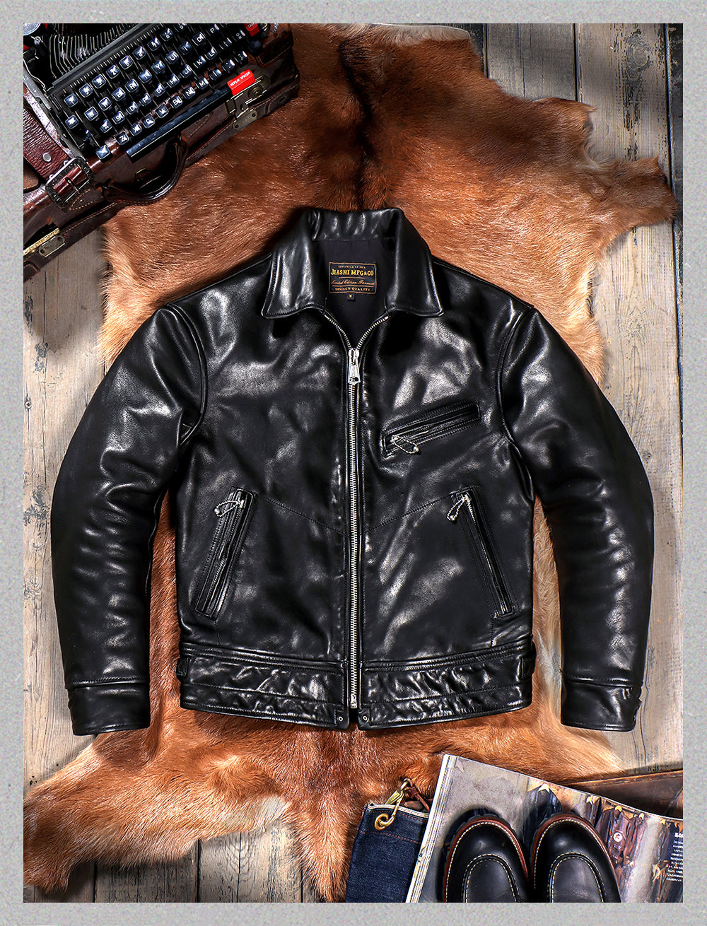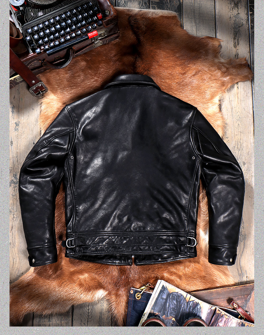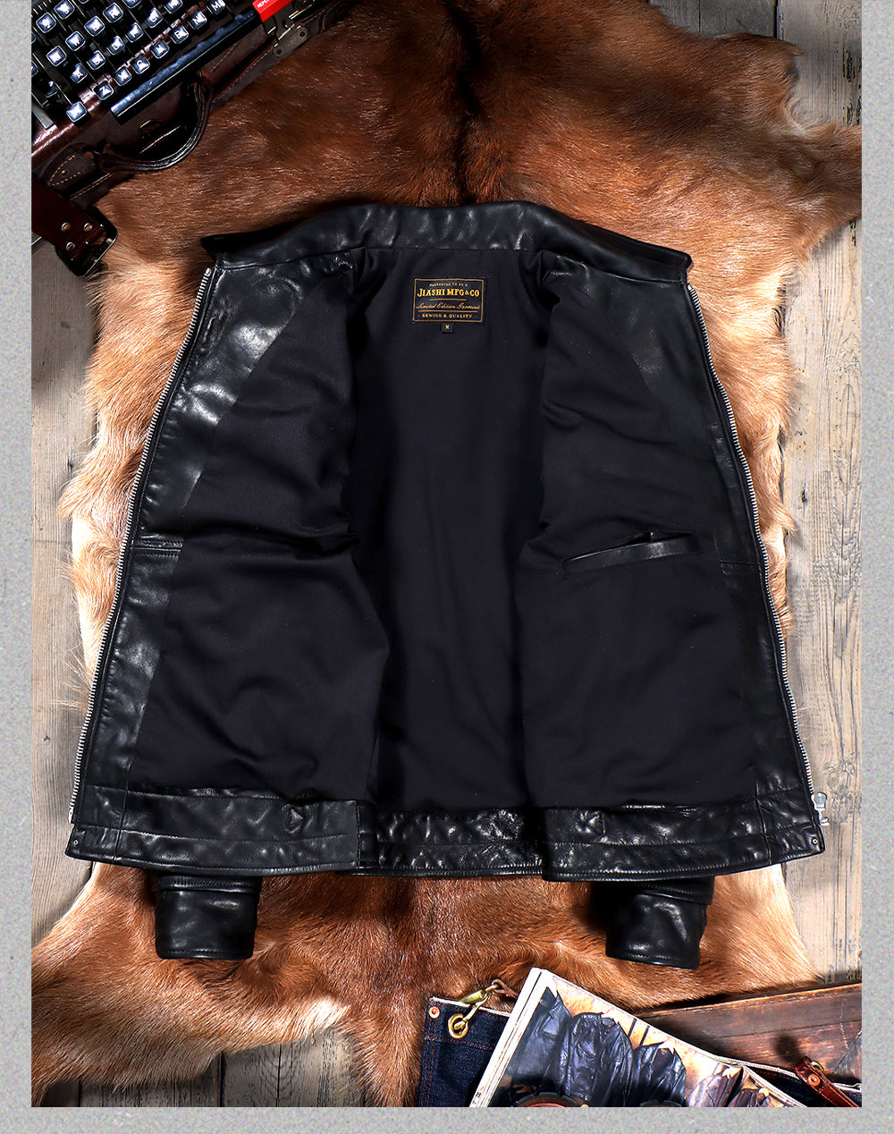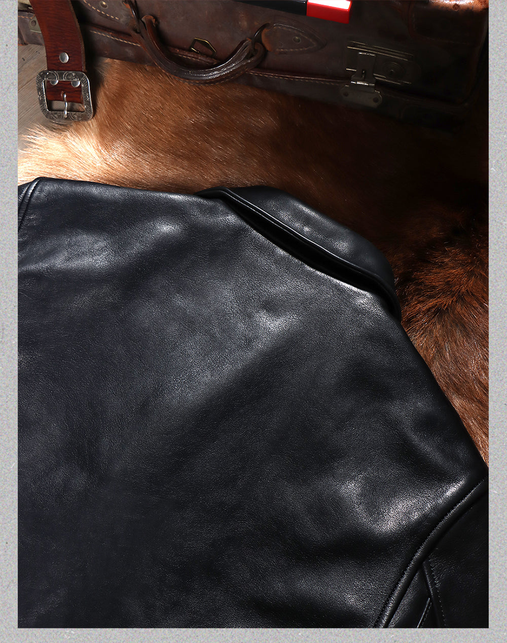 ◇ヴィンテージ復刻デザイン 1.4mm植物タンニン鞣しカーフレザー シングルライダース ジャケット◇M~5XL