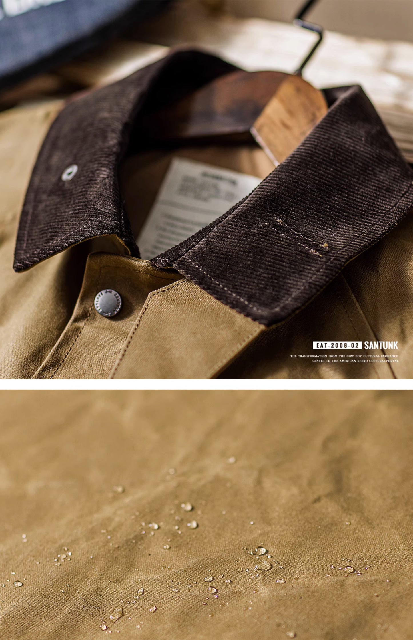 襟、袖裏のコーデュロイ切り替え
