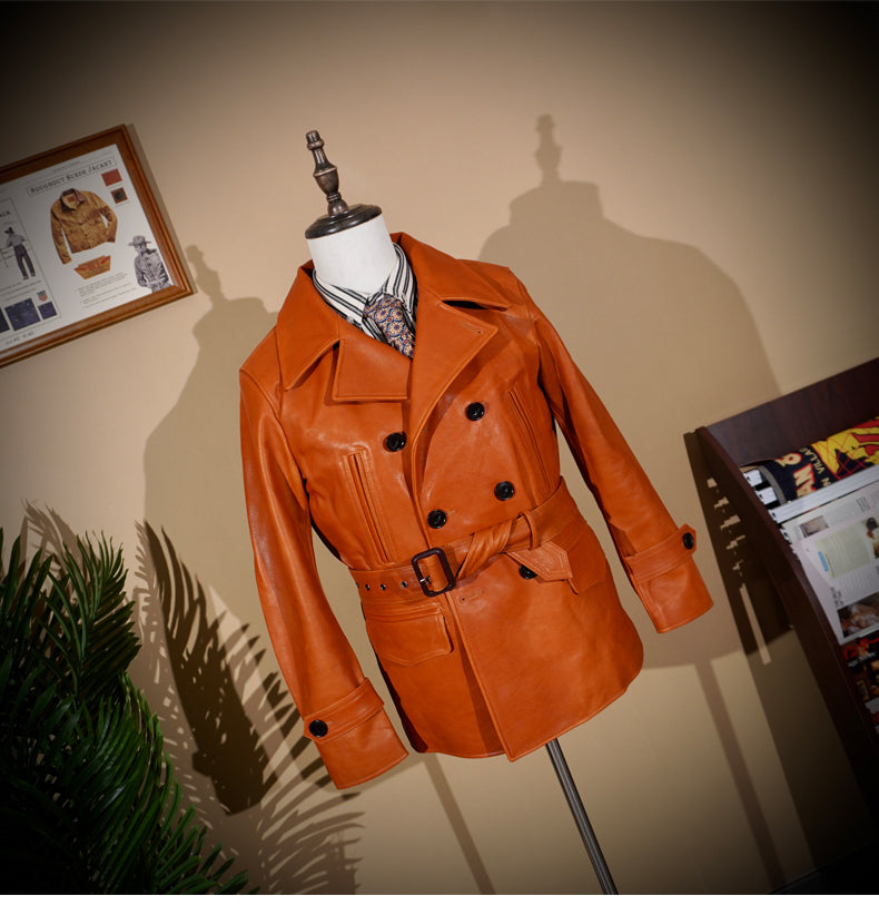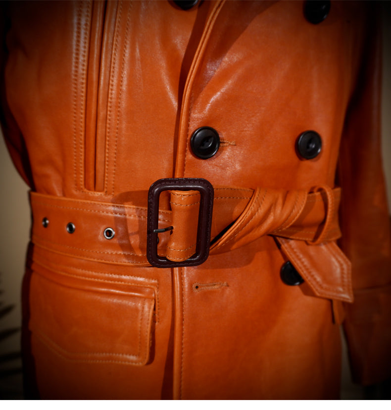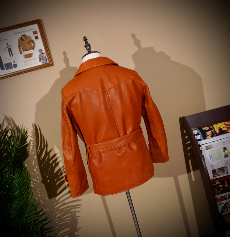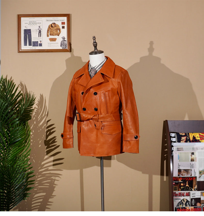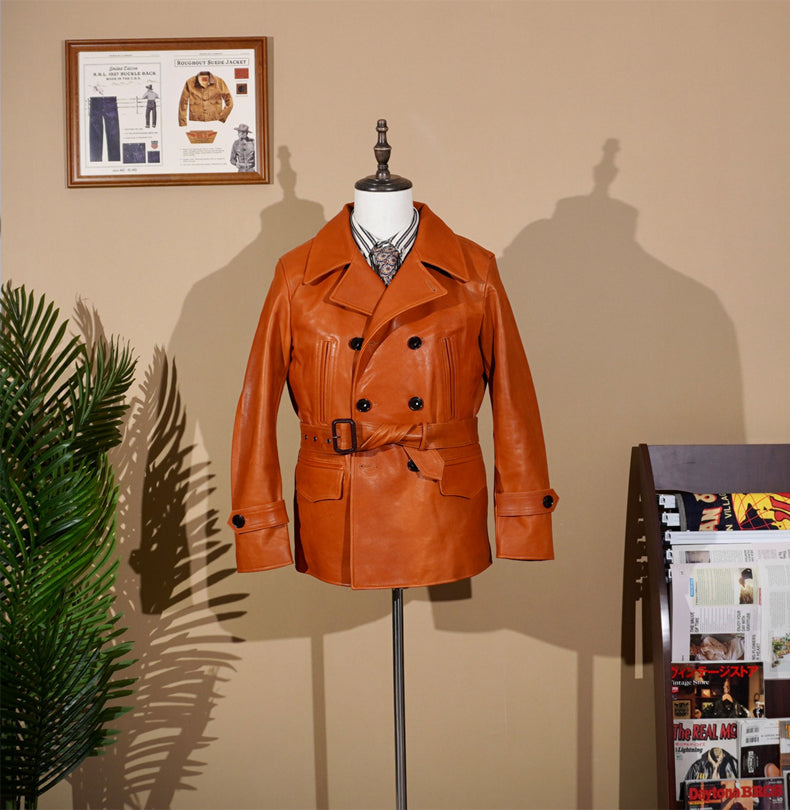 ▲ヴィンテージ復刻 カウレザーダブルブレスト ファーマーズコート▼ブラウン S~4XL