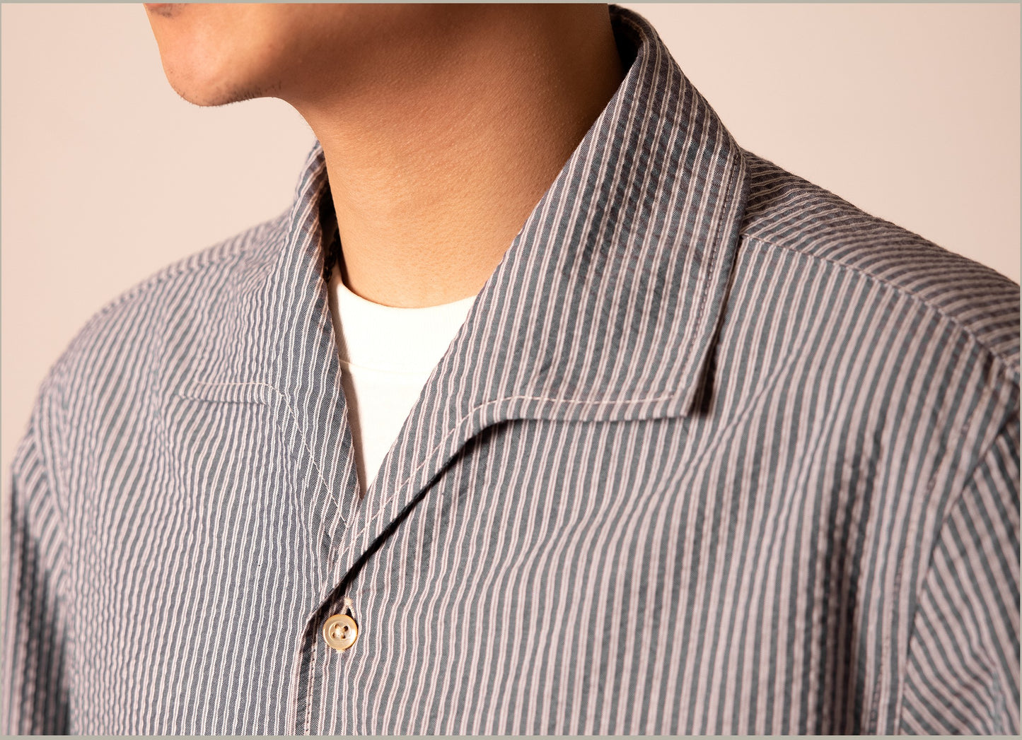 △ヴィンテージ復刻 コットンストライプ 半袖 イタリアンカラーシャツ▽S~3XL