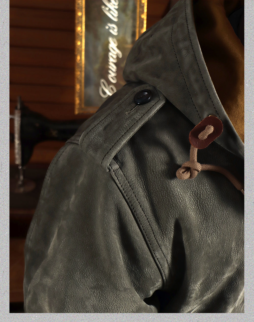ヌバックレザーで再現しました。