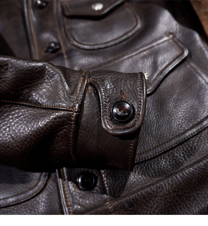 コンチョボタンがポイント★ヴィンテージ復刻 植物タンニン鞣しカウレザージャケット★S~4XL