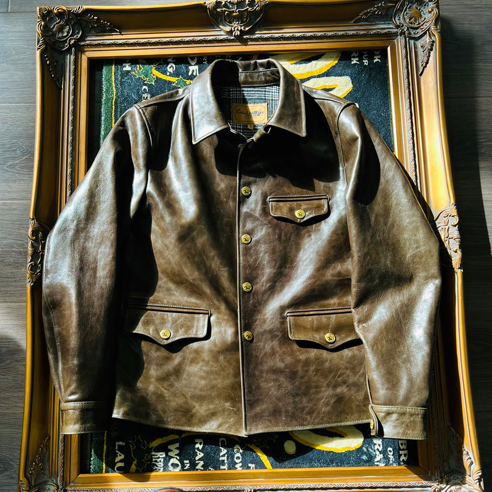 ▲昨シーズン物売り切れ価格▼ムラ感あるカーキの色味が絶品 カウレザー レザージャケット S~4XL