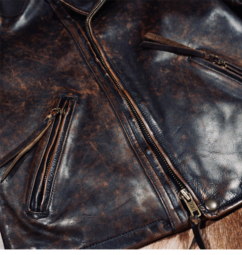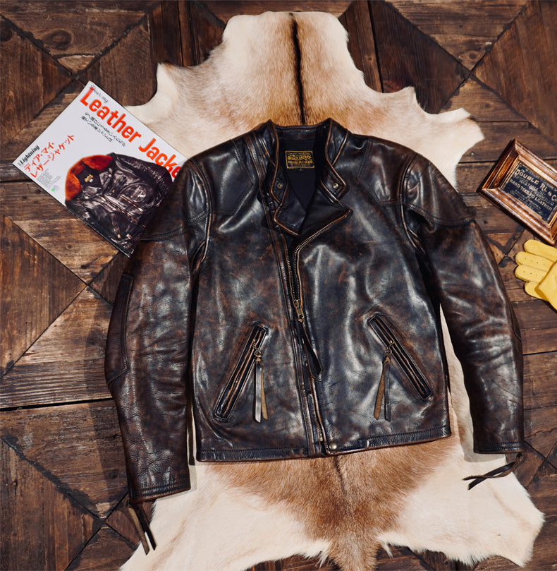 植物タンニン鞣し カウレザー シングルライダース ジャケット S~4XL