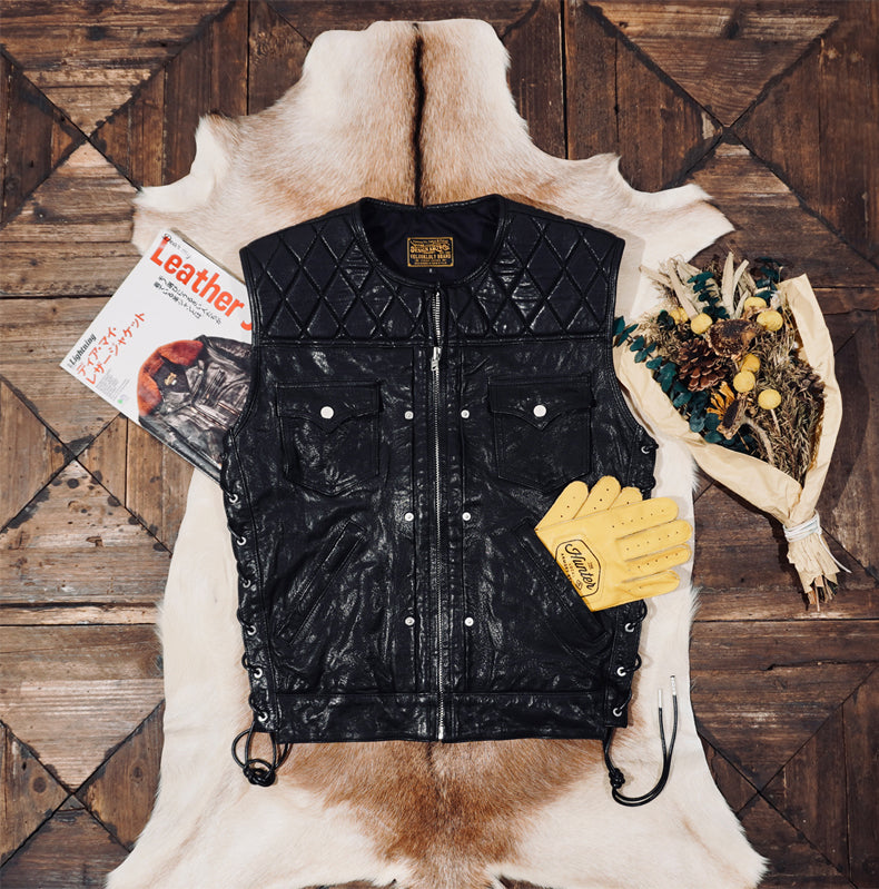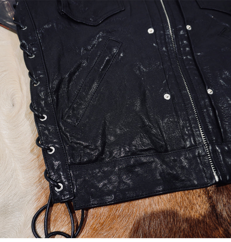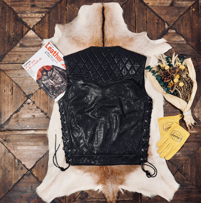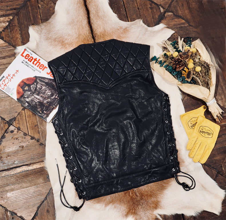 ◇植物タンニン鞣し シープレザー ウォッシュ加工ライダース ベスト◇ S~4XL