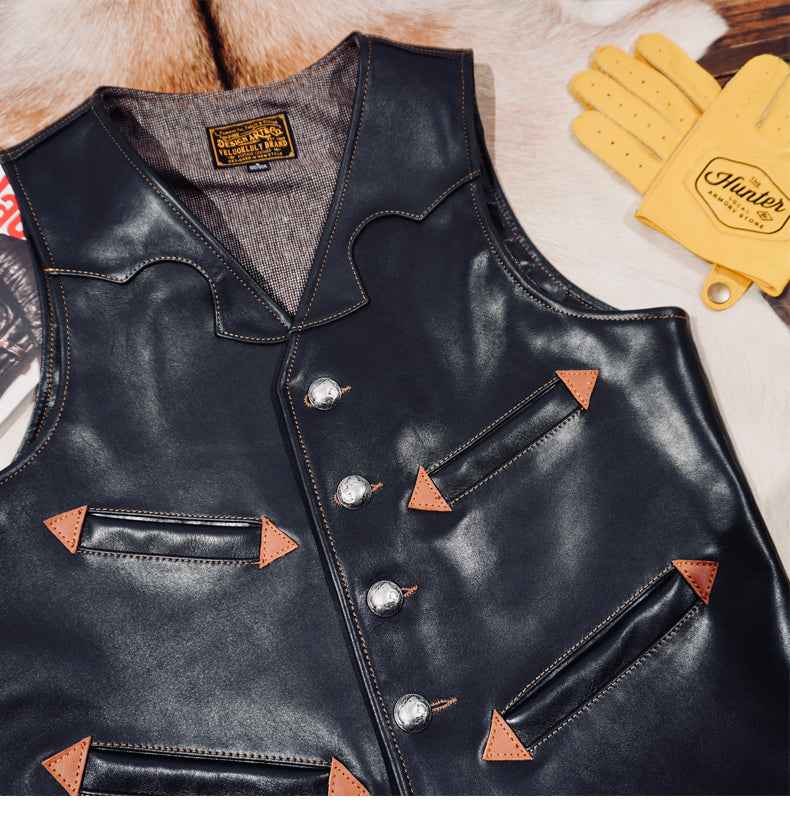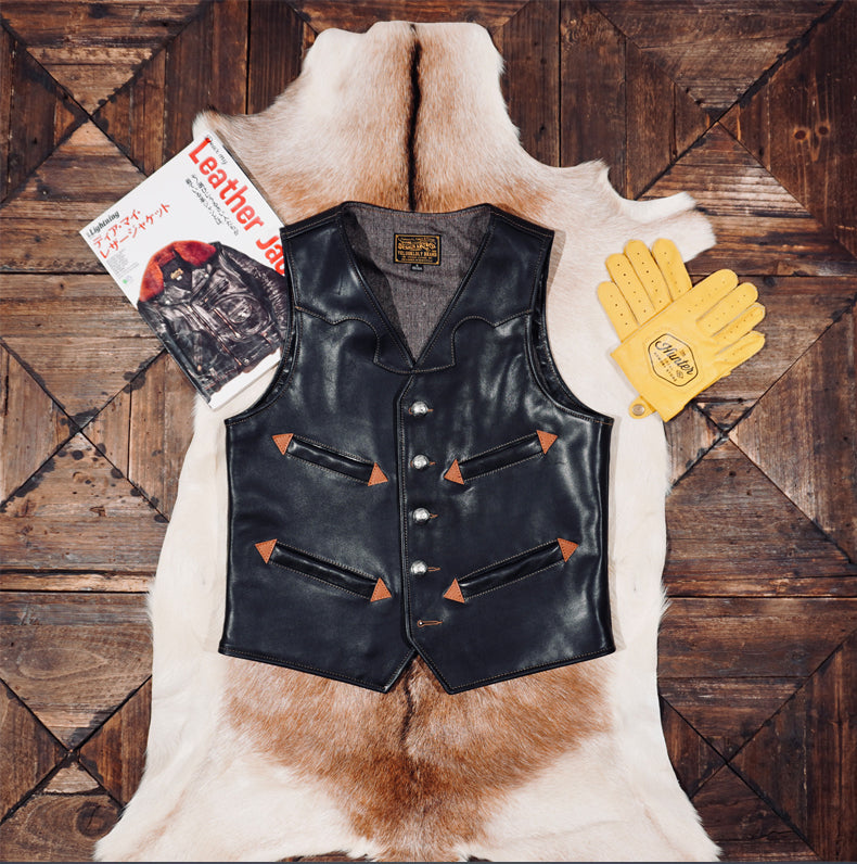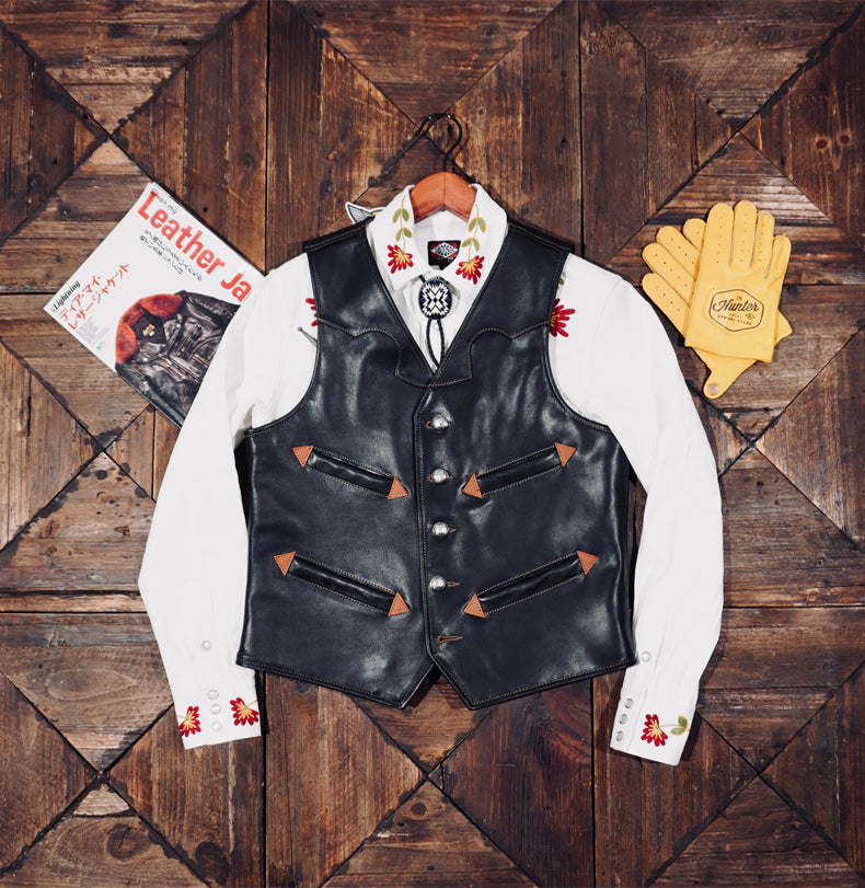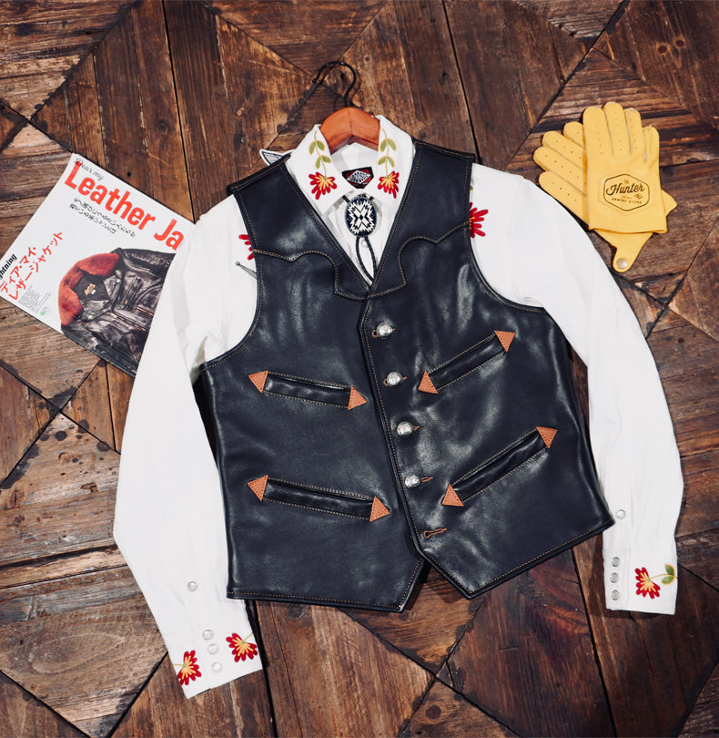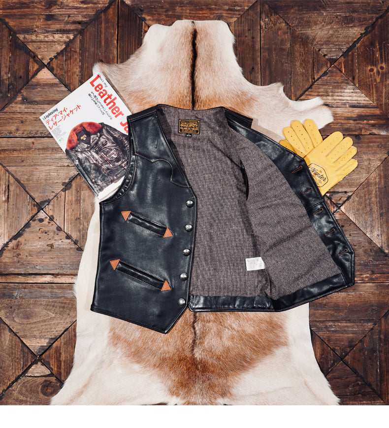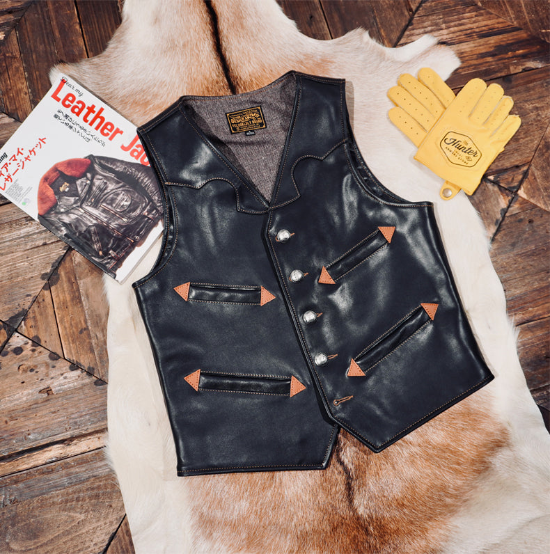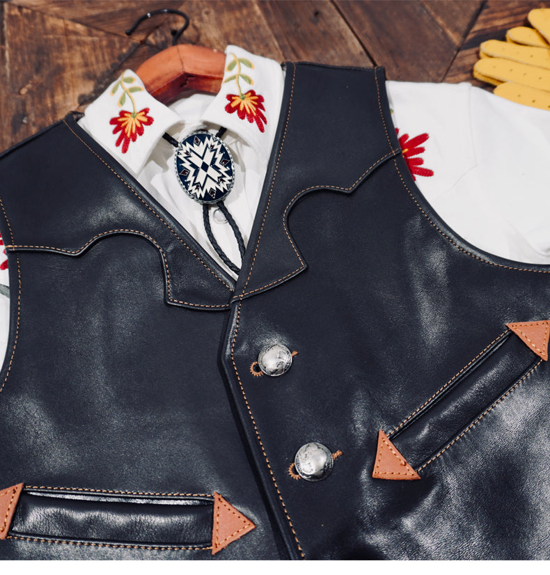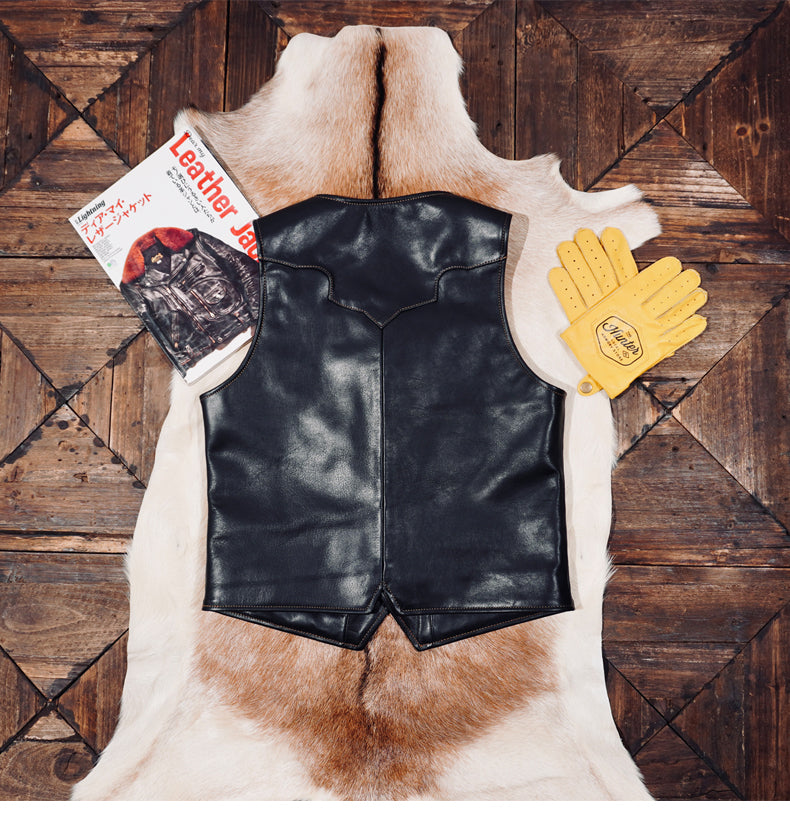 植物タンニン鞣し ホースハイドレザーウエスタン ベスト S~4XL