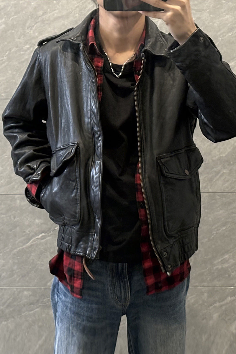 ★絶妙なヴィンテージ加工★植物タンニン鞣し シープレザー A-2ジャケット★M~2XL