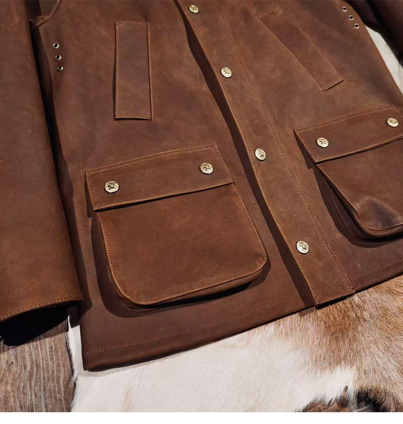 3色展開▲細部のディテールまで完璧な拘り▲カウレザー ジャケット▼M~4XL