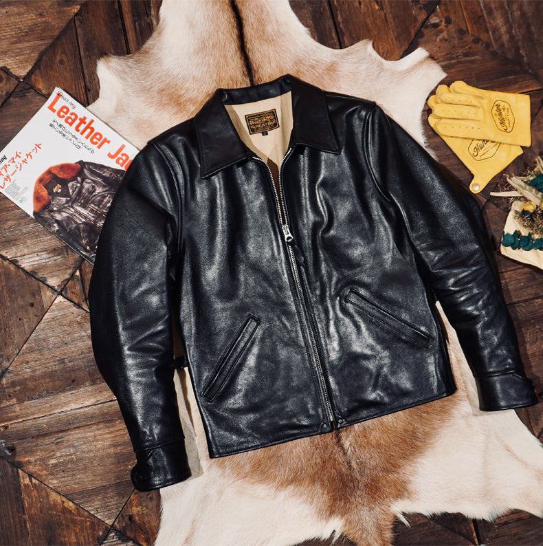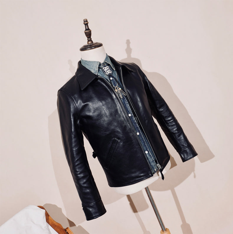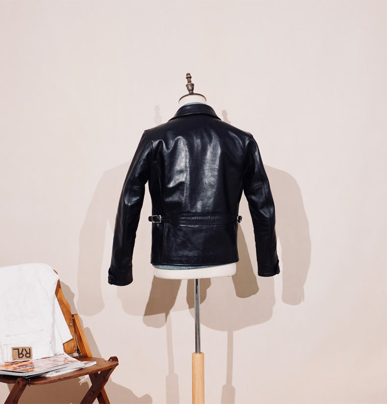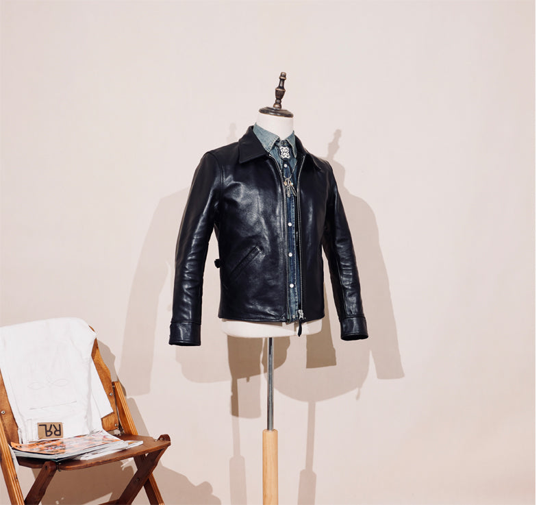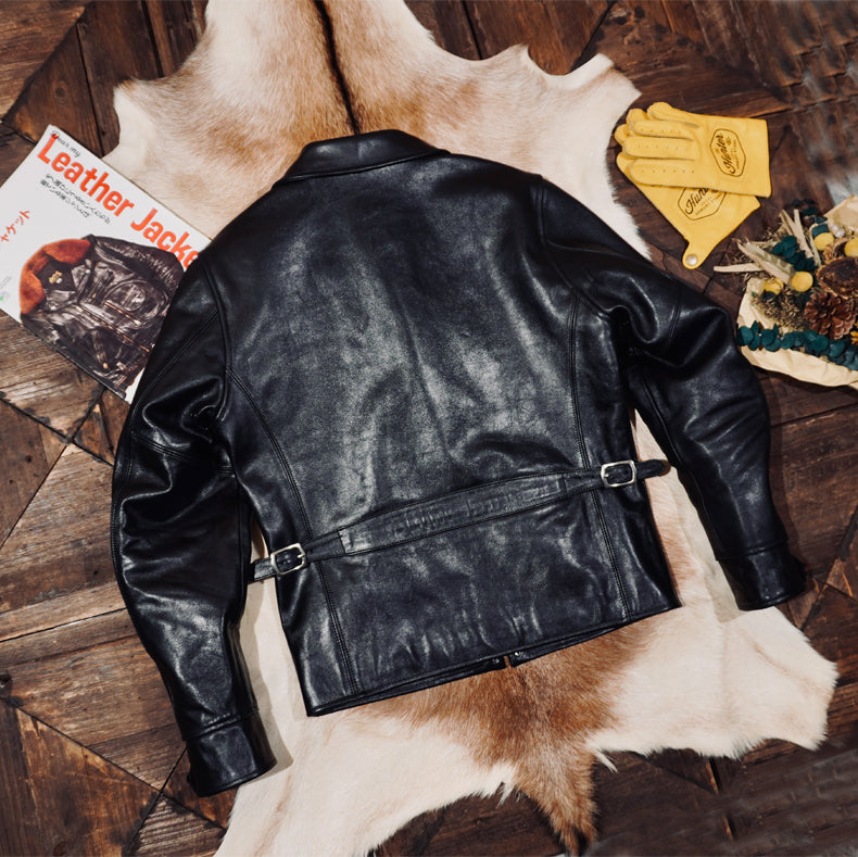 1.4mm厚★ホースハイド 植物タンニン鞣しオイルレザー スポーツジャケット ブラック★