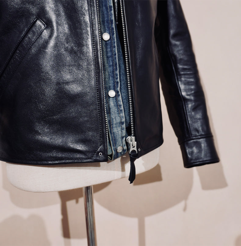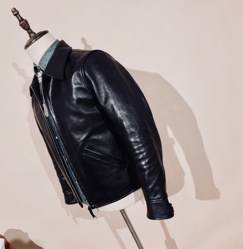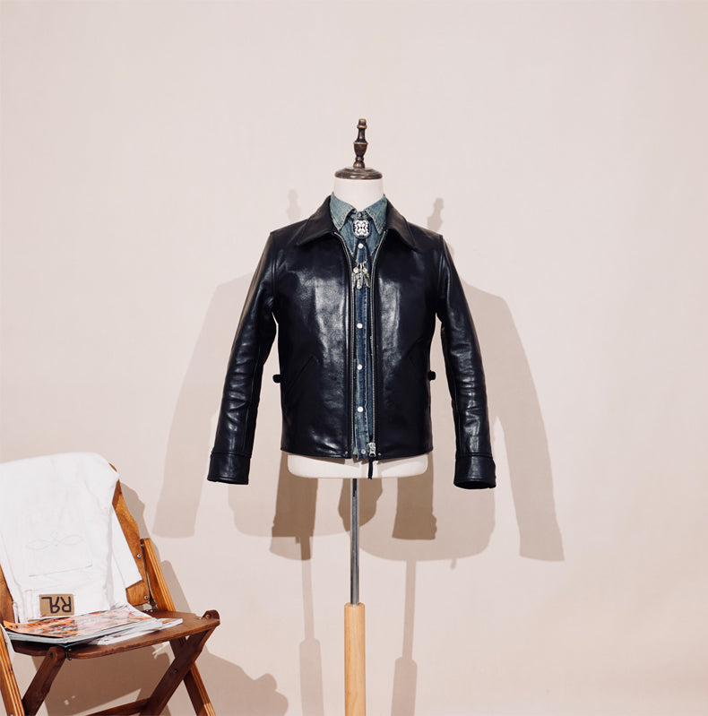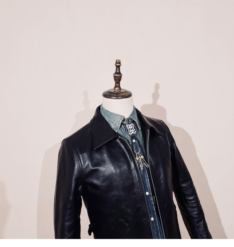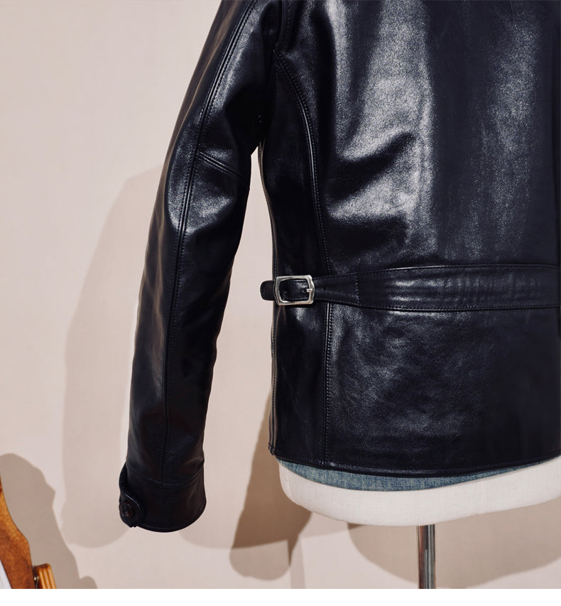 1.4mm厚★ホースハイド 植物タンニン鞣しオイルレザー スポーツジャケット ブラック★