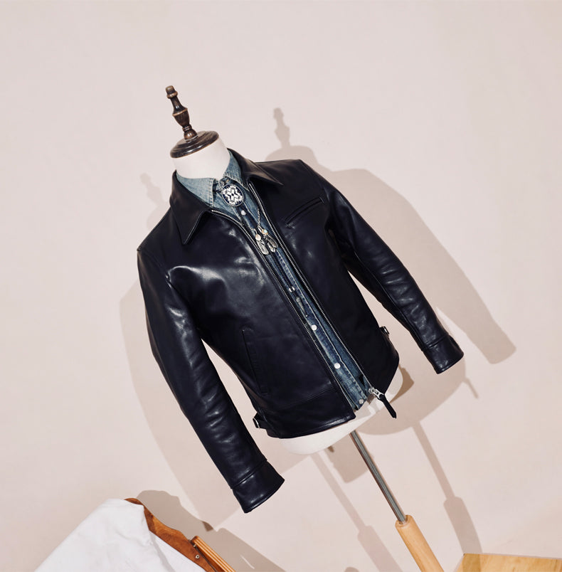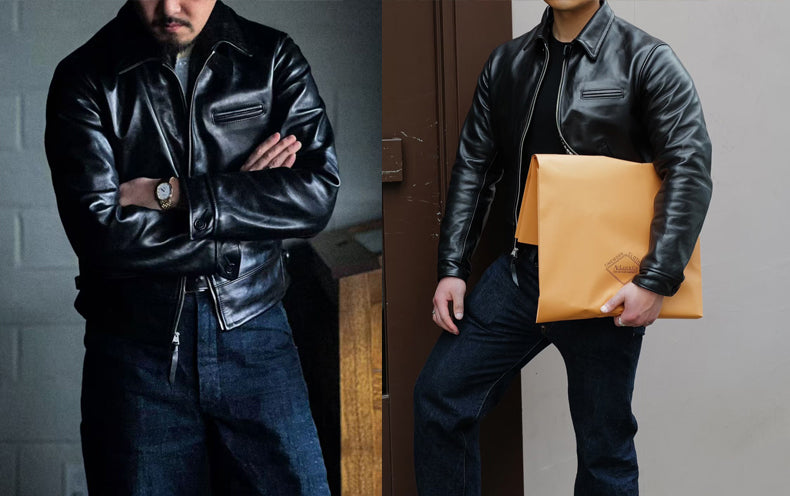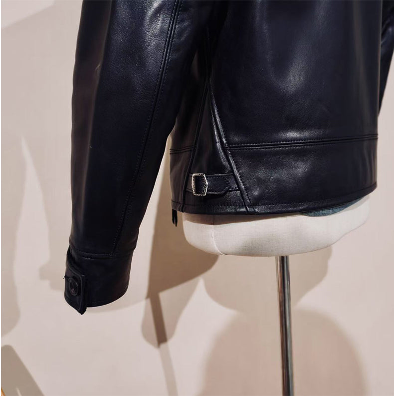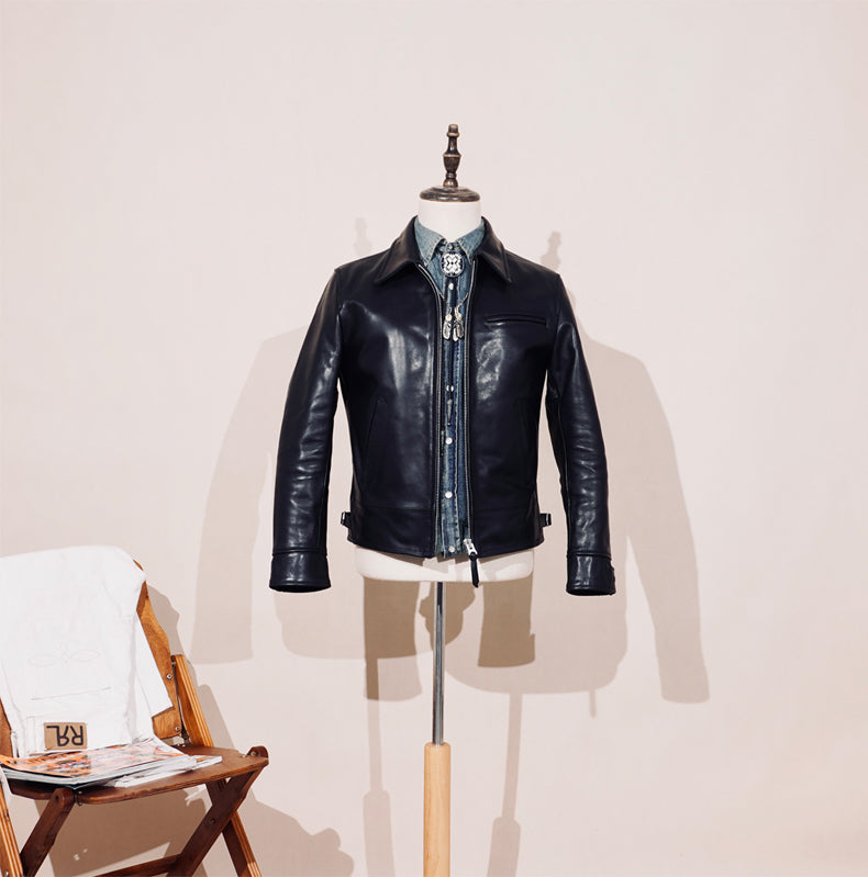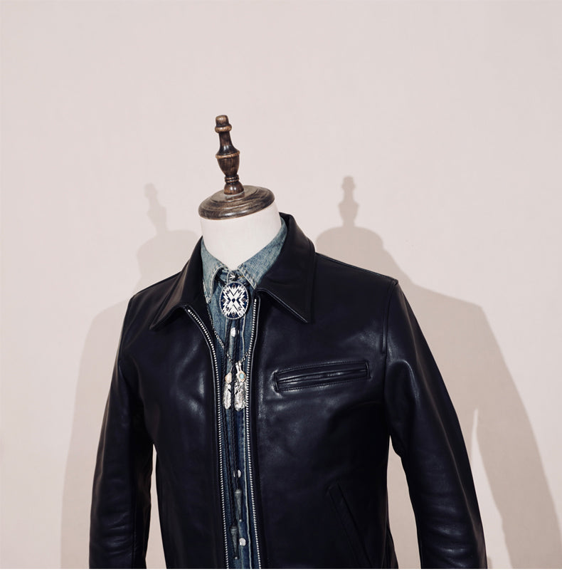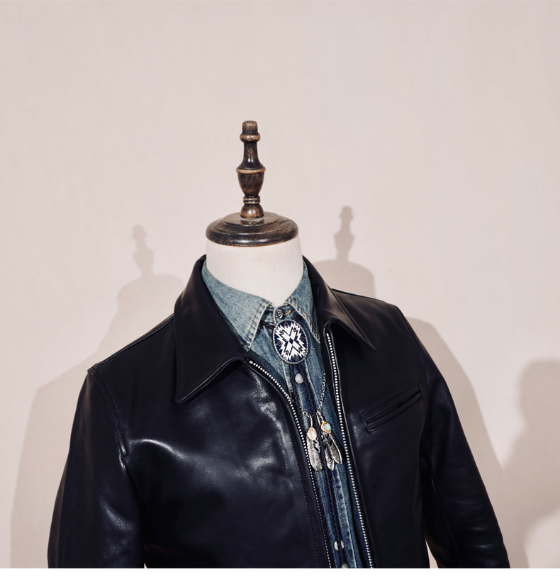1.4mm厚◇ホースハイド 植物タンニン鞣しオイルレザー スポーツジャケット ブラック◇
