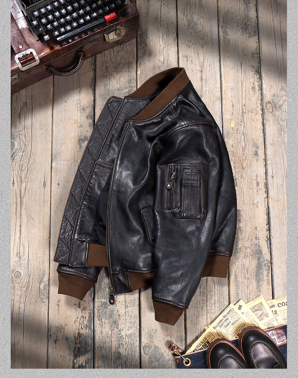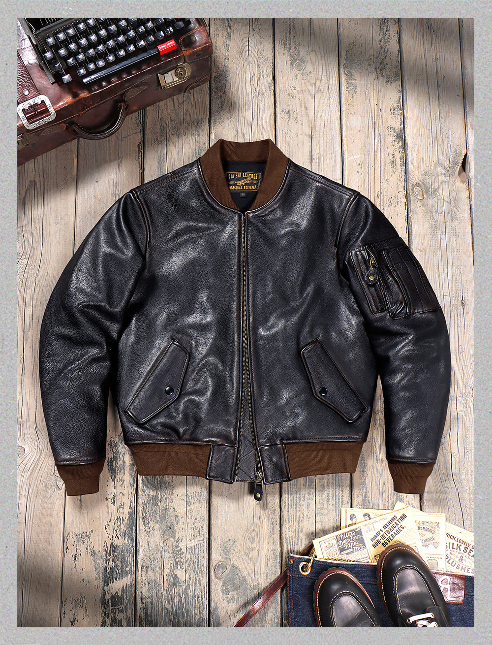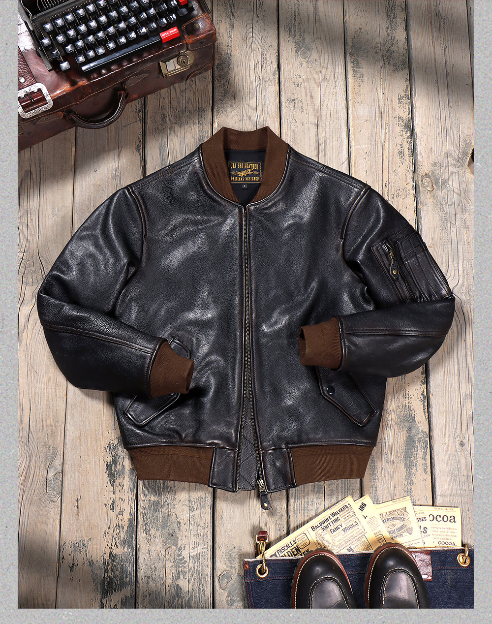 1.4mm アメリカ産茶芯カウレザー使用 MA-1 フライトジャケット S~6XL