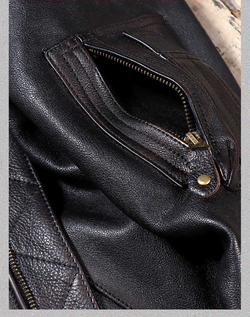 ステッチングワークなどもレザーで再現。