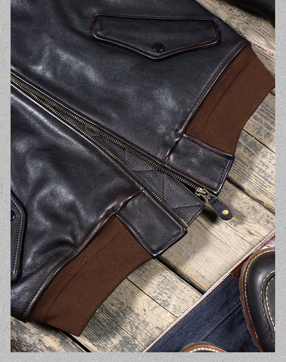 ウォッシュ加工 アメリカ産茶芯カウレザー使用