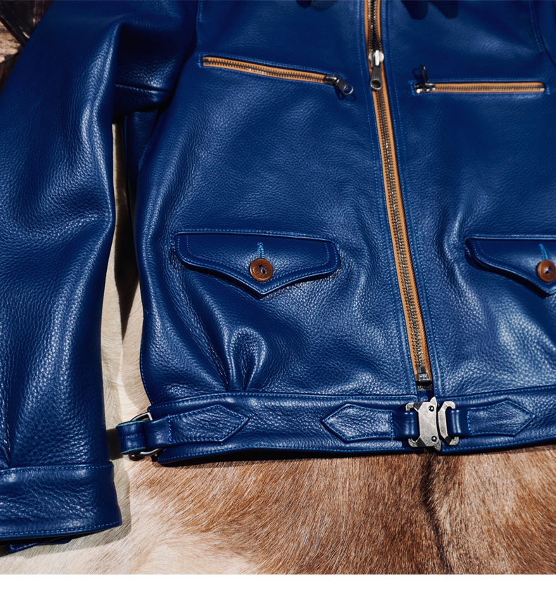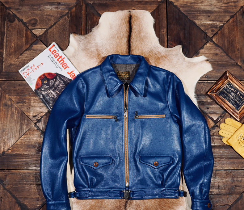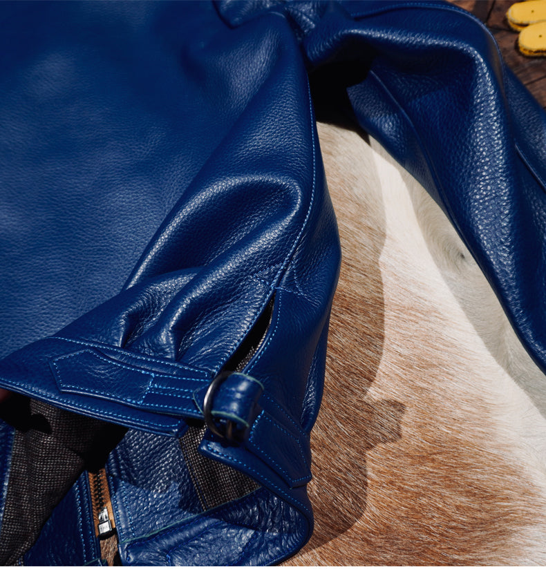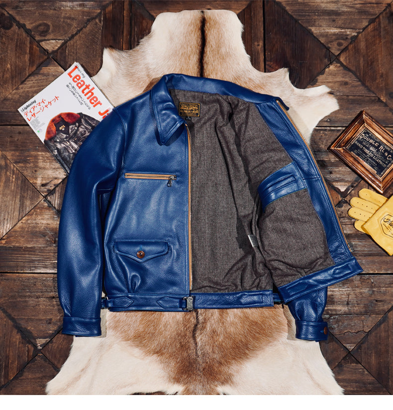 1.6mm厚◇ドイツ空軍復刻 エーリヒ・ハルトマン モデル 植物タンニン鞣しブルーカウレザージャケット◇