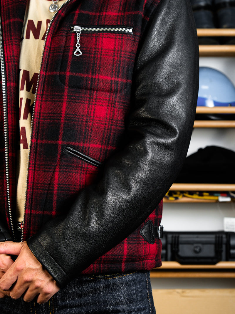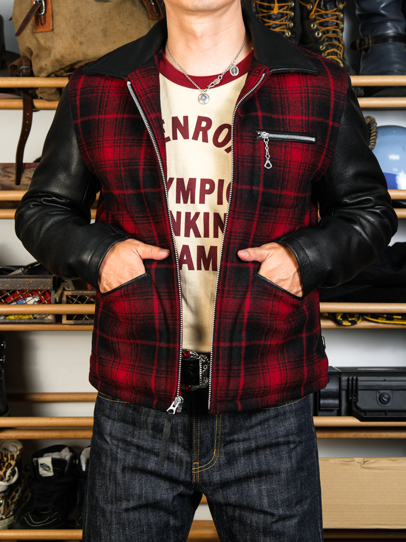 ◇1930’sヴィンテージ復刻デザイン バッファローチェックウール 切替 レザージャケット◇S~3XL