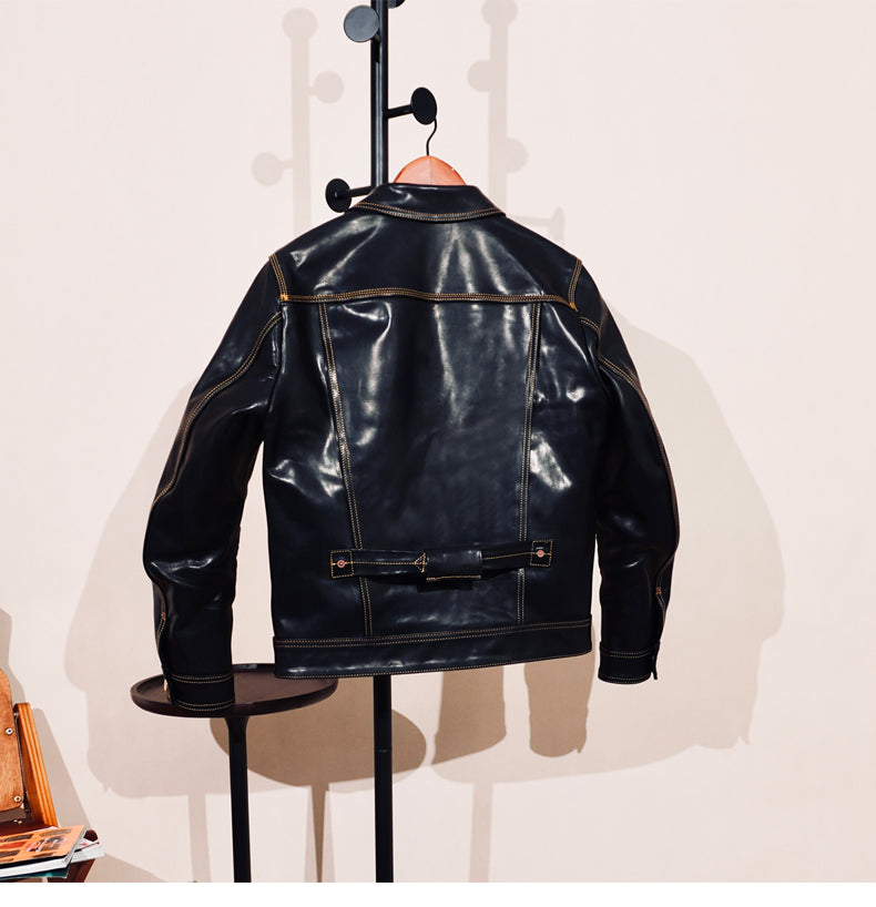 ★1st型 506復刻モデル 茶芯ホースハイドレザージャケット★ブラック S~3XL