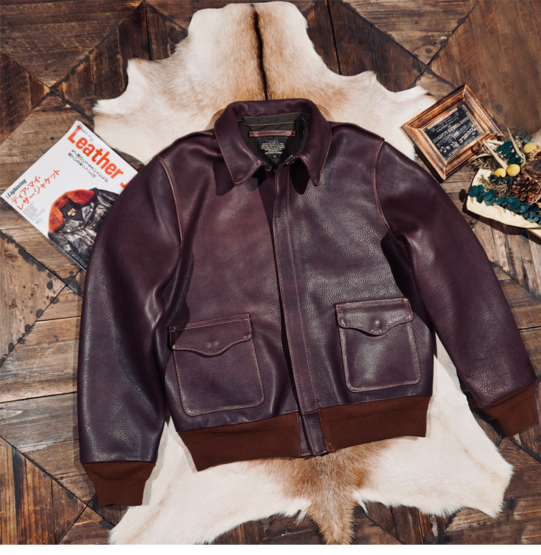 2.0mm厚絶妙な色味▲ヴィンテージ復刻 植物タンニン鞣し カウレザー A-2ジャケット▼